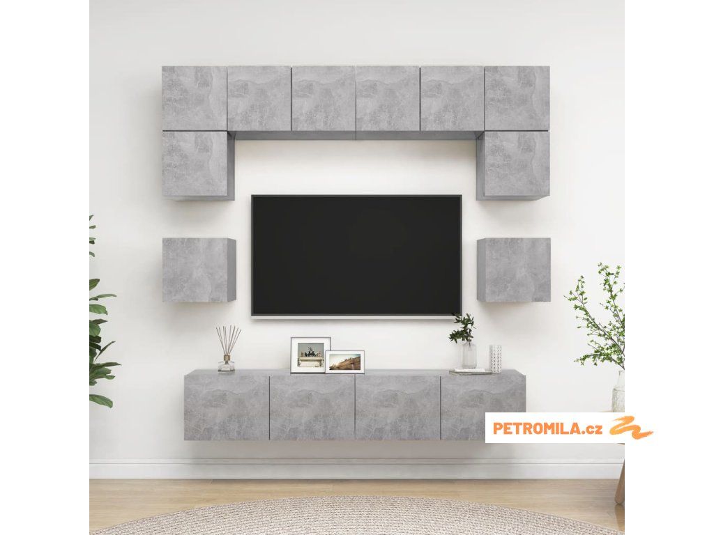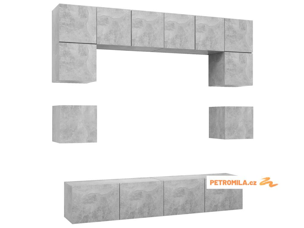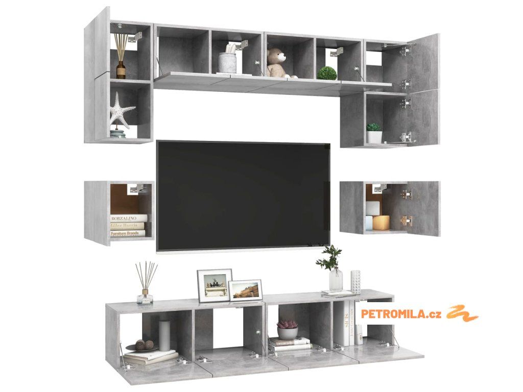 8dílný set TV skříněk betonově šedý kompozitní dřevo