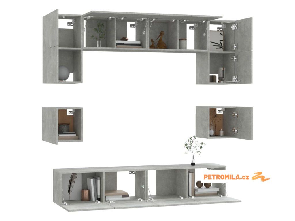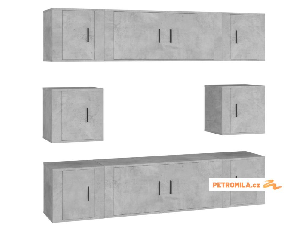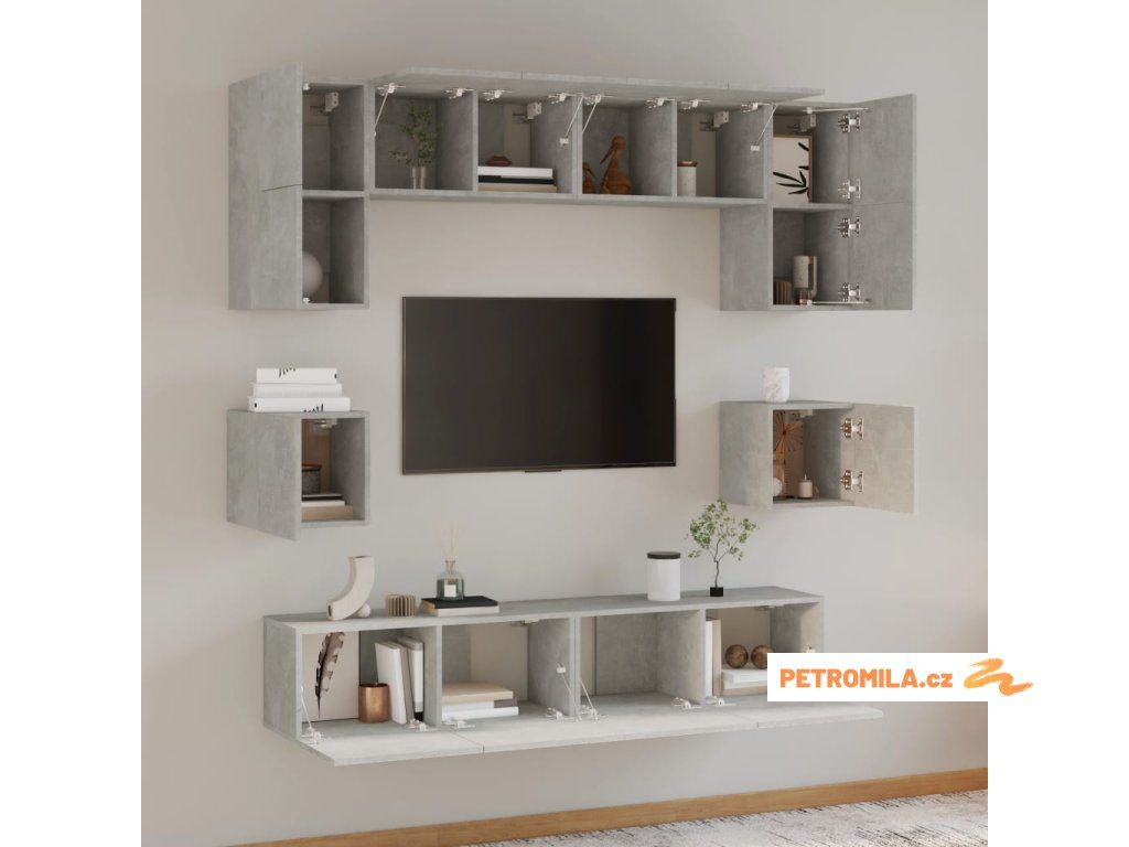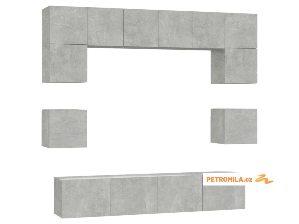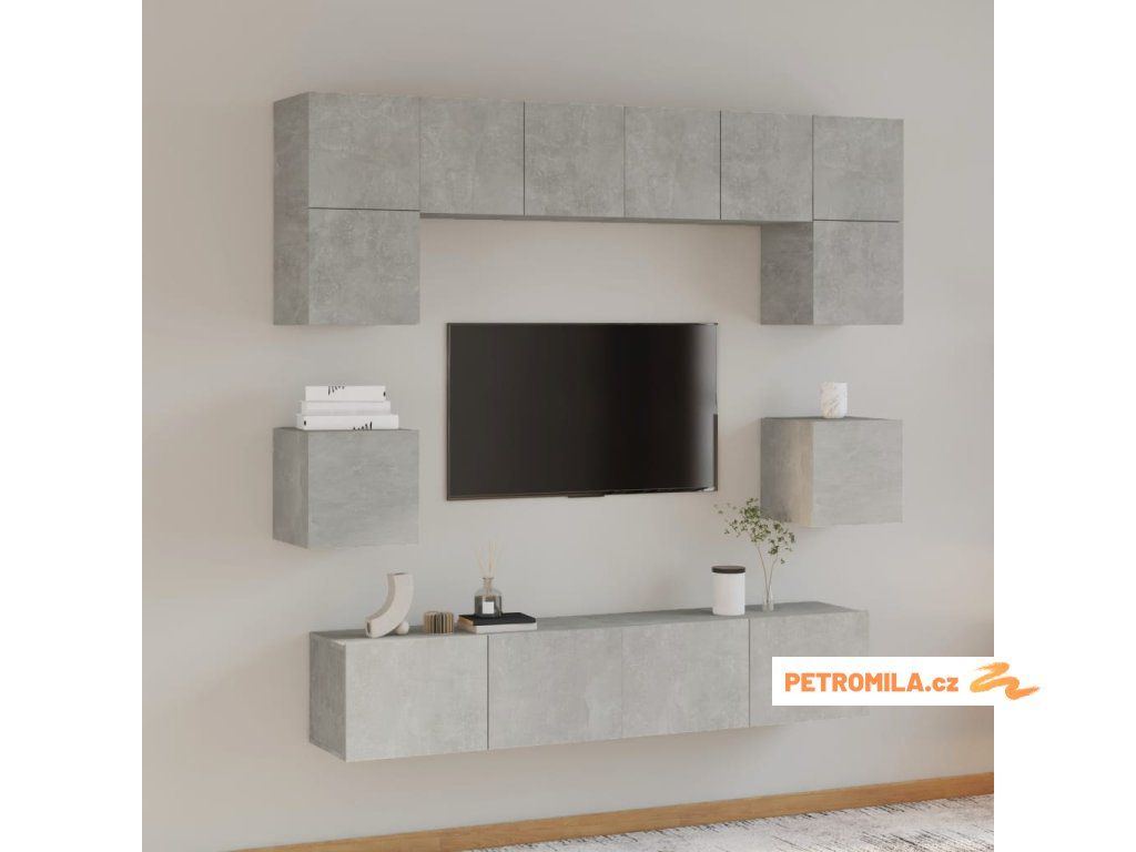8dílný set TV skříněk betonově šedý kompozitní dřevo