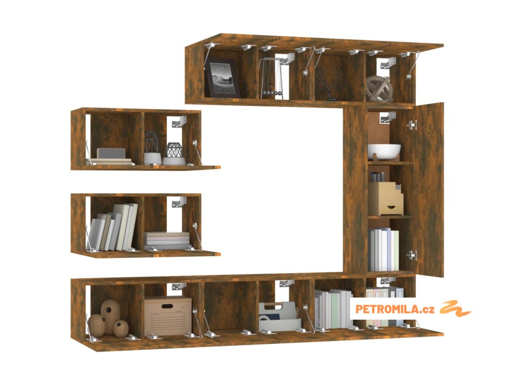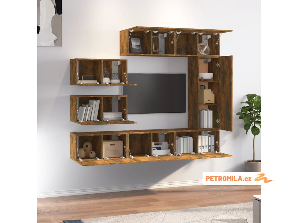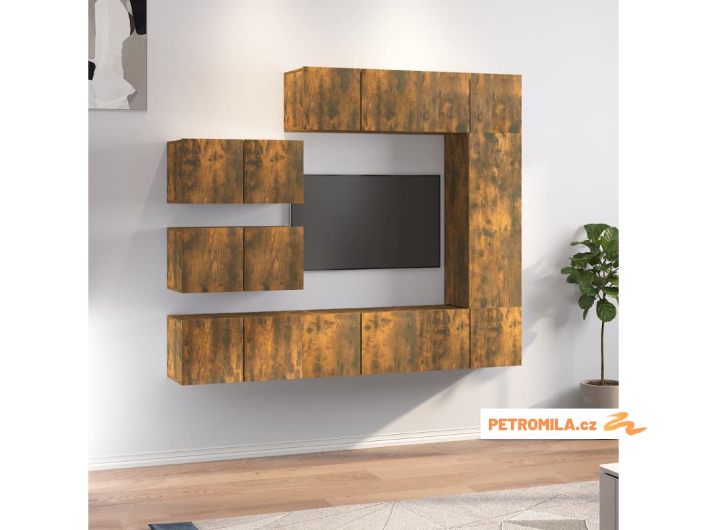 8dílný set TV skříněk kouřový dub kompozitní dřevo