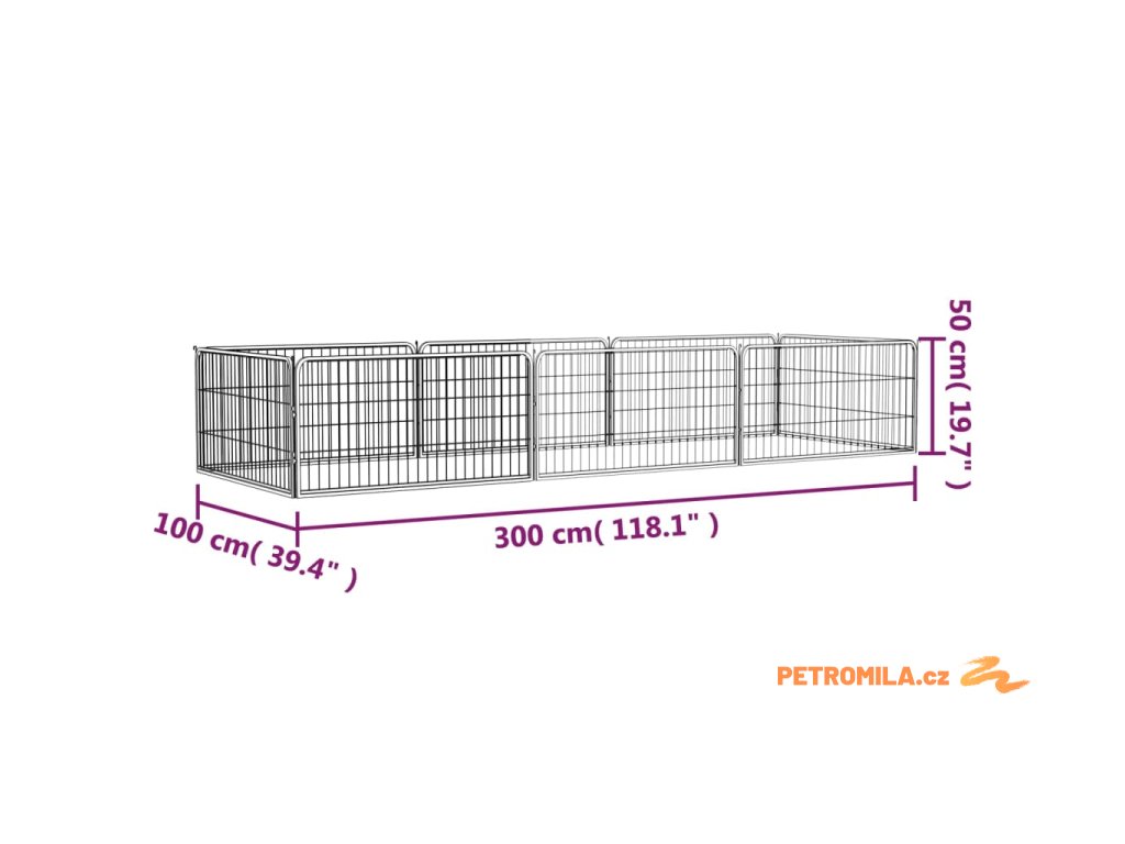 8panelová ohrádka pro psy černá 100 x 50 cm práškovaná ocel