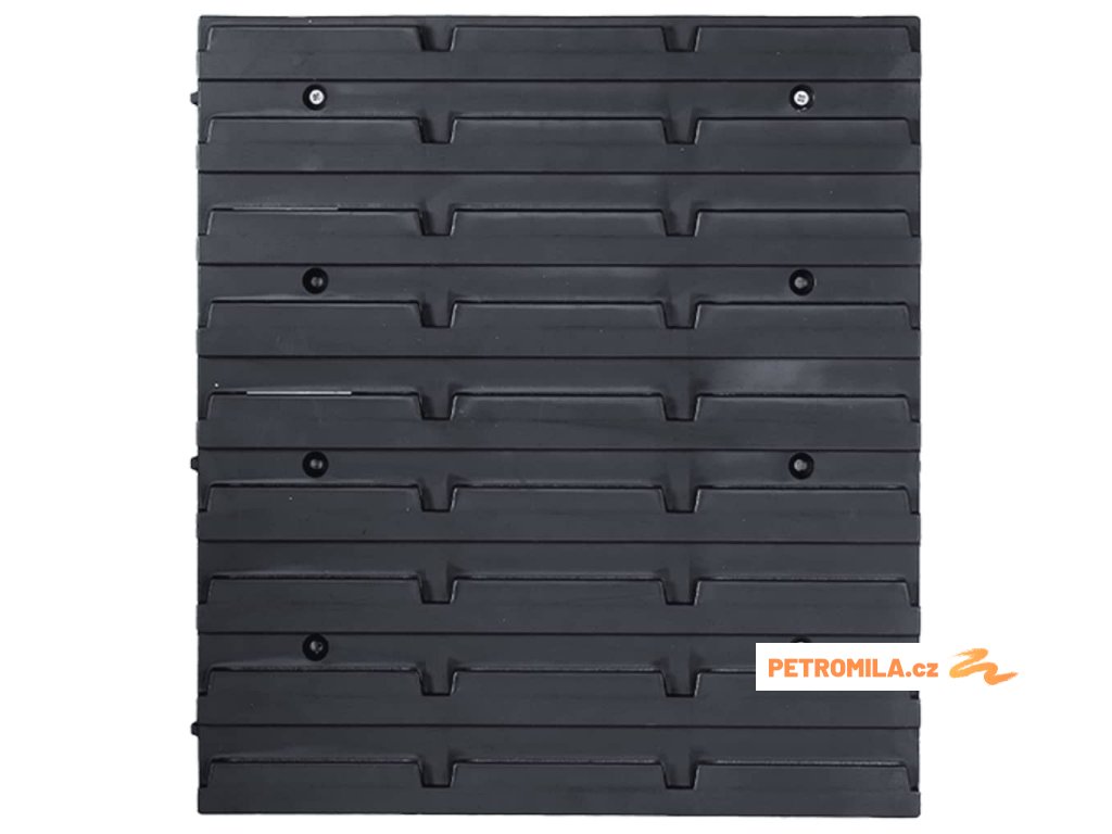 Tento funkční držák se stohovatelnými boxy nabízí celou řadu možností pro uložení malých součástek, jako jsou šrouby, hřebíky, matice, objímky, spoje apod. Do šesti pevných nástěnných panelů je zasazených 90 zásobníků, které si lze označit, abyste měli lepší přehled o jejich obsahu. Jednotlivé boxy můžete také samostatně vytahovat a naskládat je na sebe. Úložnou sadu je možné libovolně rozšiřovat a dá se snadno namontovat na stěnu garáže nebo kůlny. Soupravu skladovacích zásobníků si můžete přizpůsobit dle vlastních potřeb.