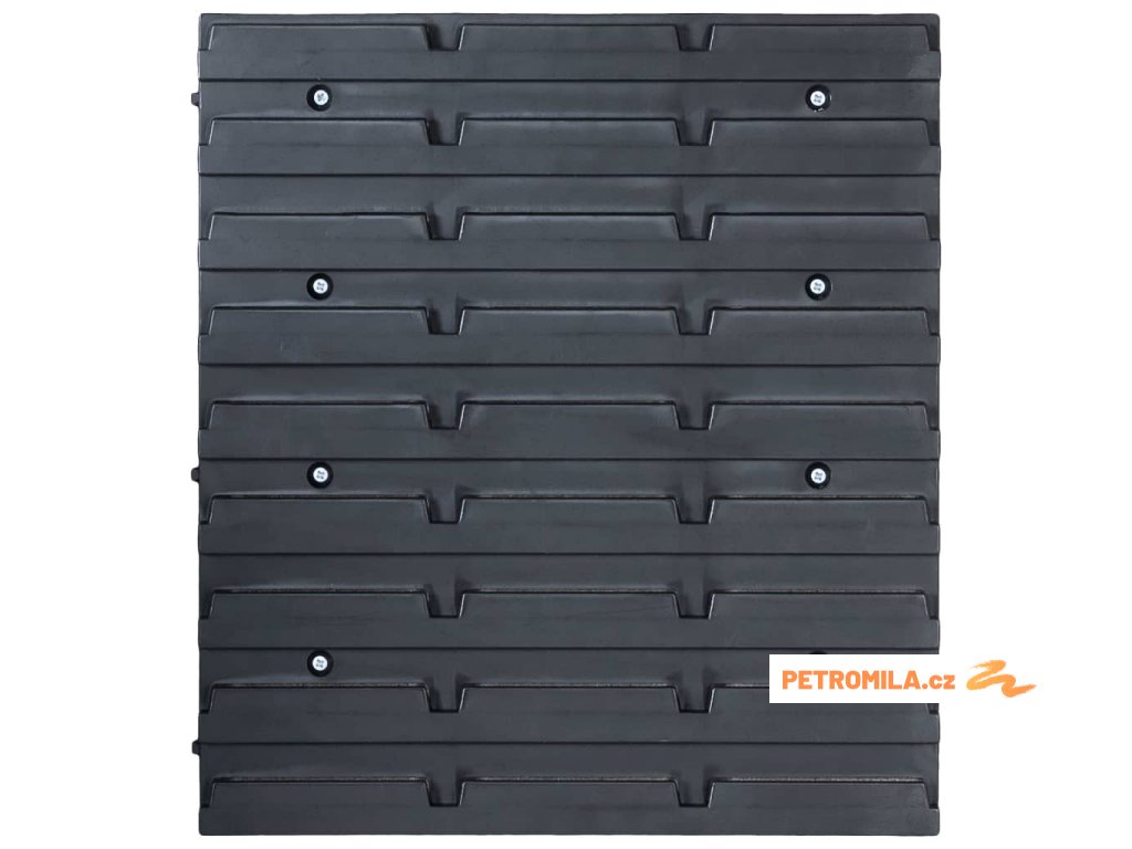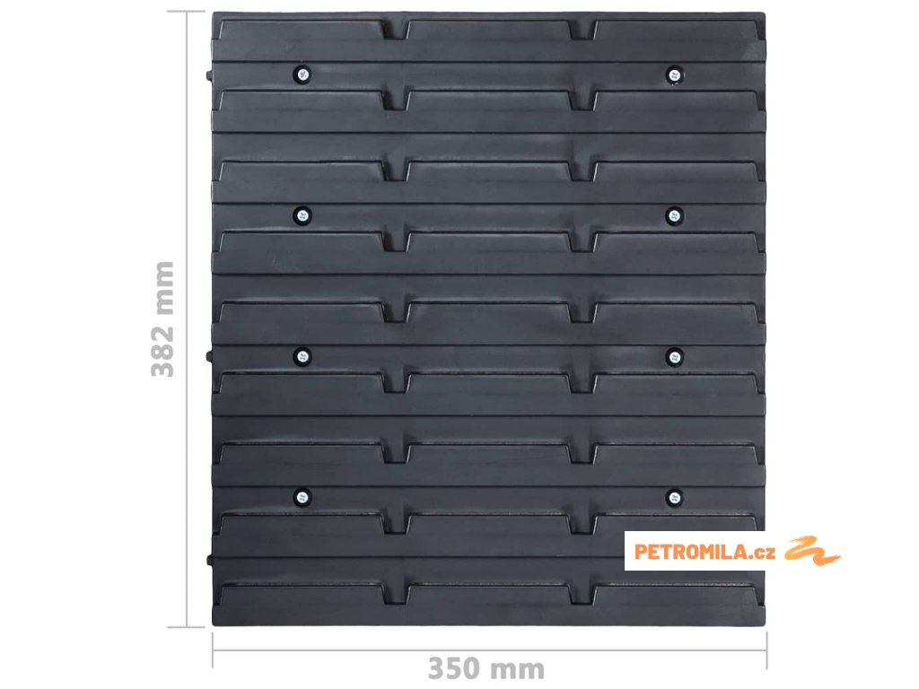 Tento funkční držák se stohovatelnými boxy nabízí celou řadu možností pro uložení malých součástek, jako jsou šrouby, hřebíky, matice, objímky, spoje apod. Do šesti pevných nástěnných panelů je zasazených 90 zásobníků, které si lze označit, abyste měli lepší přehled o jejich obsahu. Jednotlivé boxy můžete také samostatně vytahovat a naskládat je na sebe. Úložnou sadu je možné libovolně rozšiřovat a dá se snadno namontovat na stěnu garáže nebo kůlny. Soupravu skladovacích zásobníků si můžete přizpůsobit dle vlastních potřeb.