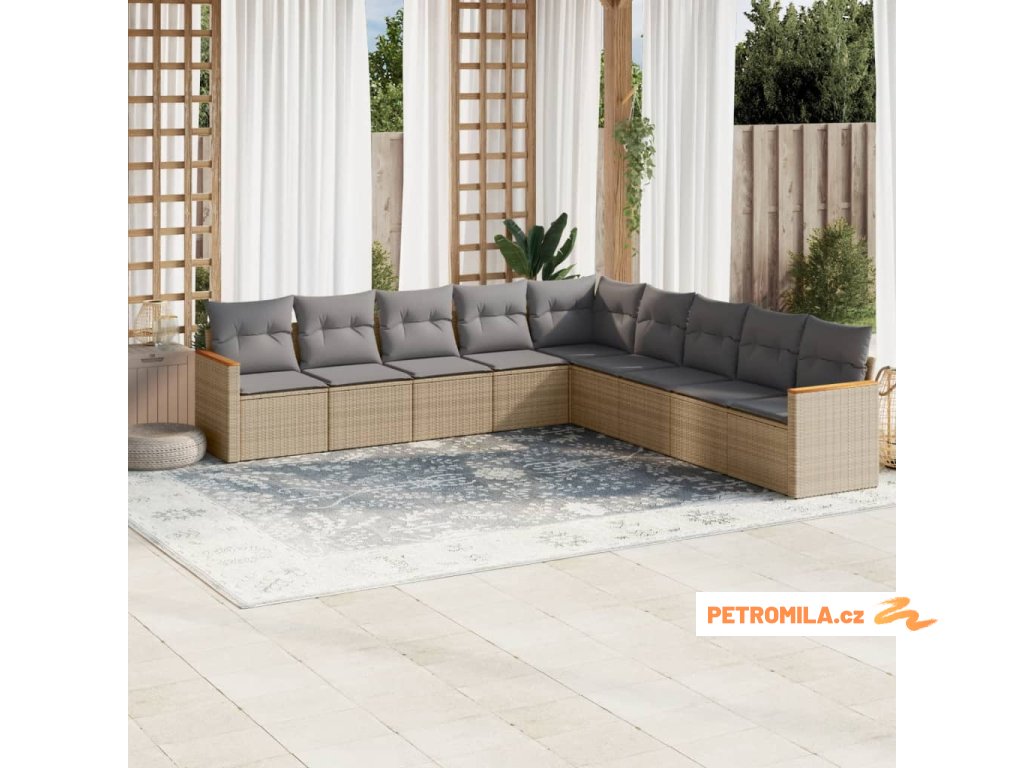 9dílná zahradní sedací souprava a podušky mix béžové polyratan