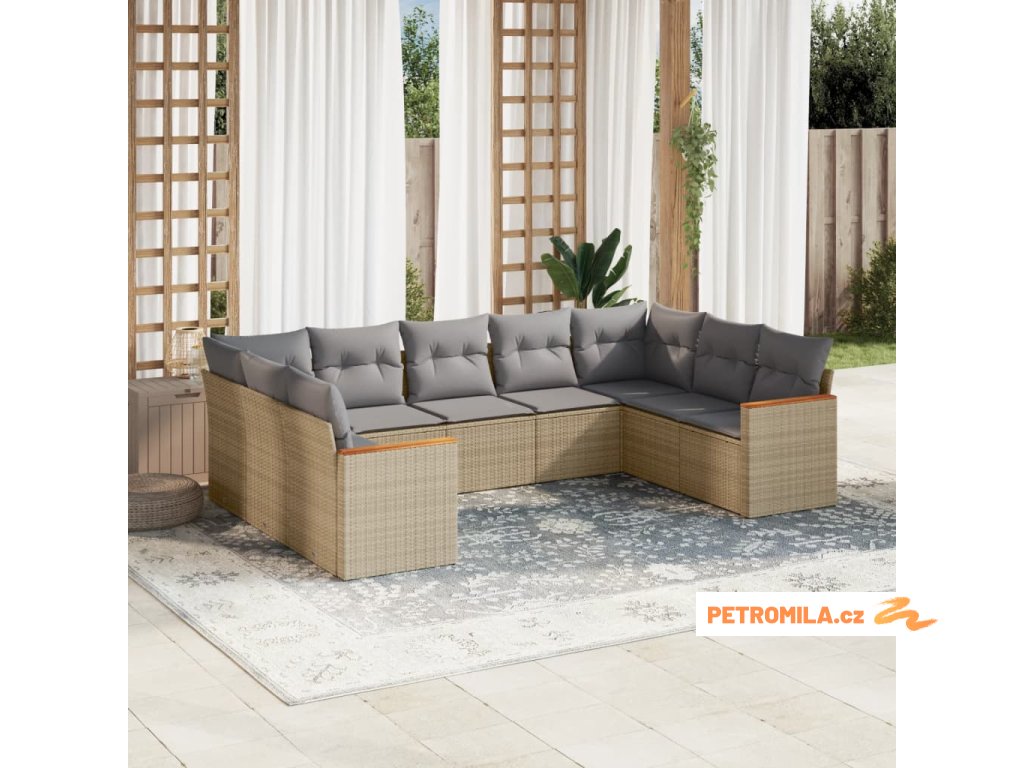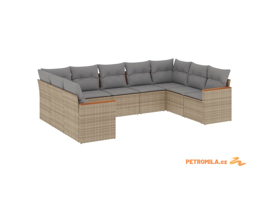 9dílná zahradní sedací souprava a podušky mix béžové polyratan