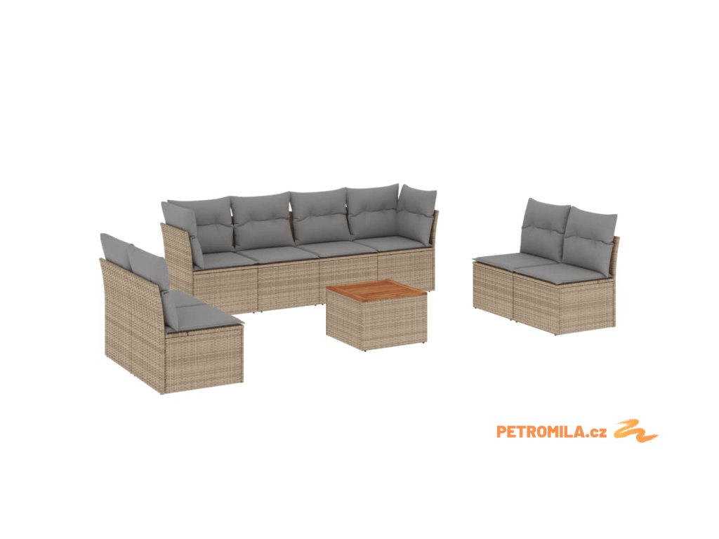Sada zahradních pohovek s polštářem 8 pcs Béžová Poly ratan