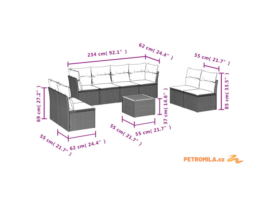 Tato zahradní sedací souprava je dokonalým doplňkem vaší zahrady, terasy nebo dvorku a poskytne vám pohodlné a příjemné místo, kde si můžete povídat s rodinou a přáteli nebo jen tak odpočívat a užívat si pobyt venku.