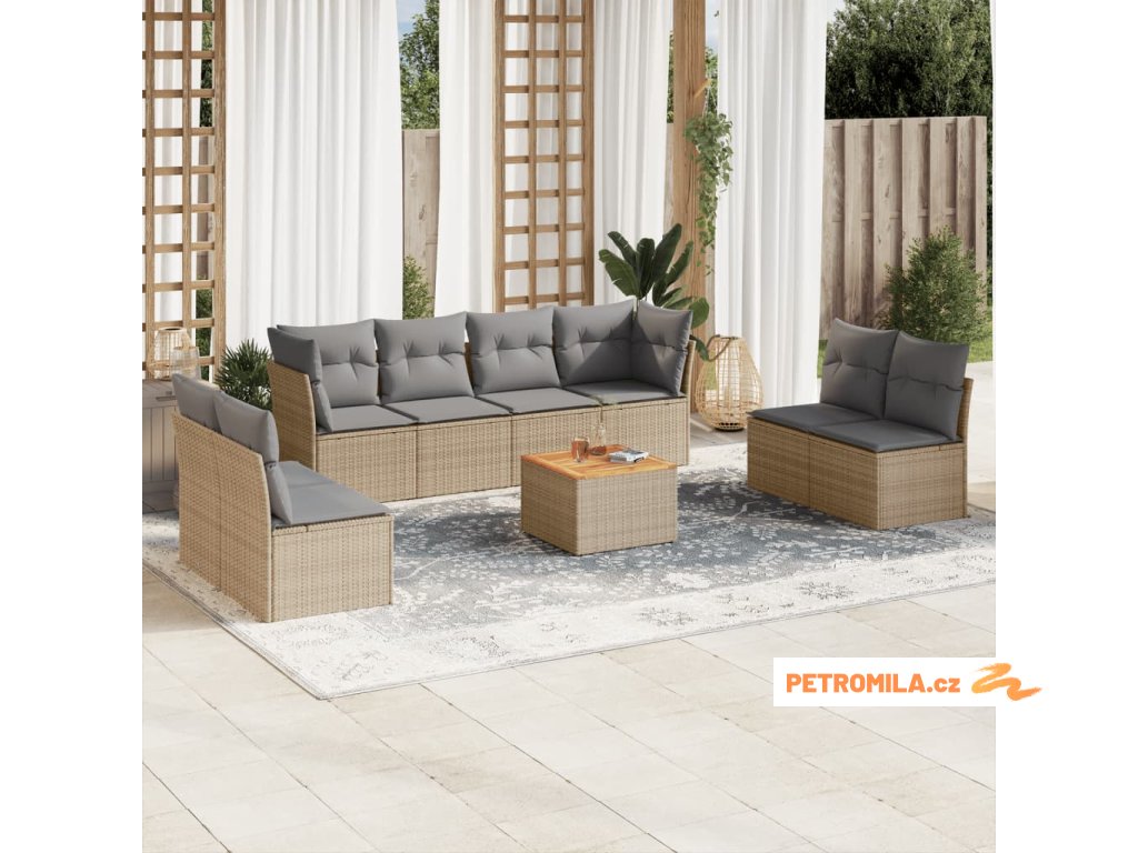 9dílná zahradní sedací souprava a podušky mix béžové polyratan