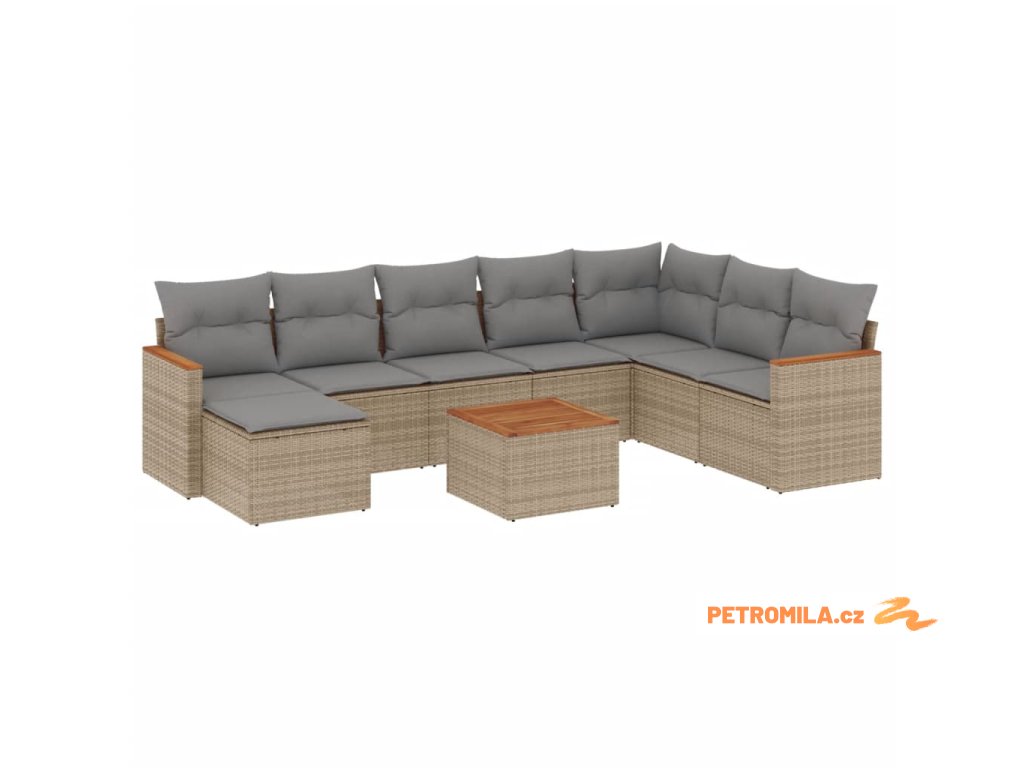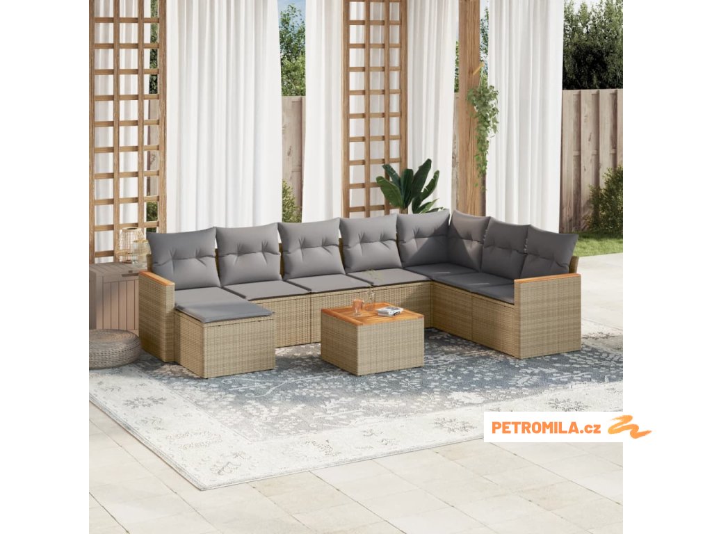 9dílná zahradní sedací souprava a podušky mix béžové polyratan