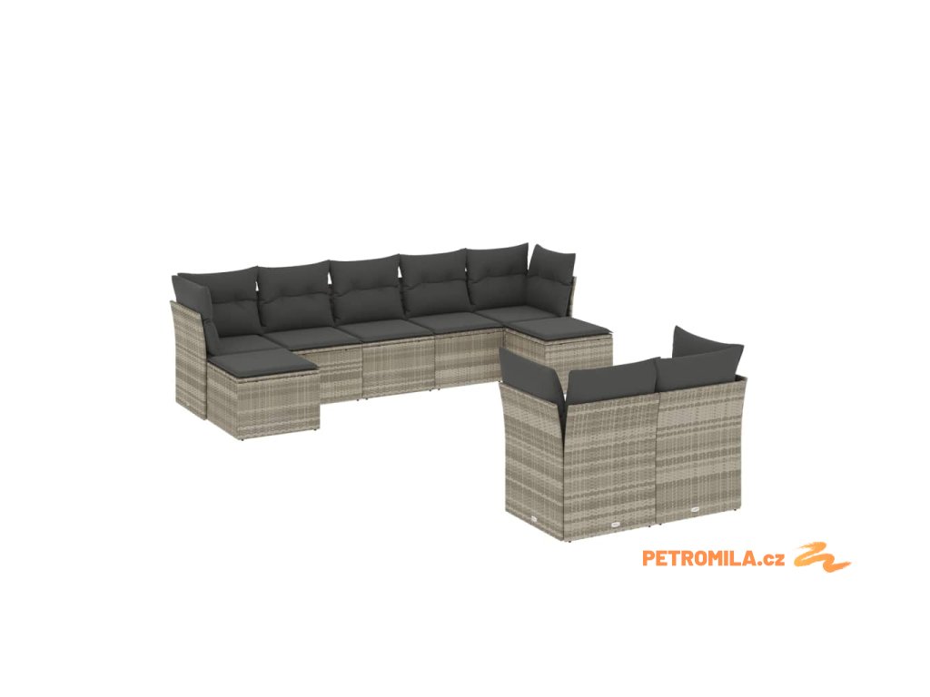 9dílná zahradní sedací souprava a podušky světle šedá polyratan