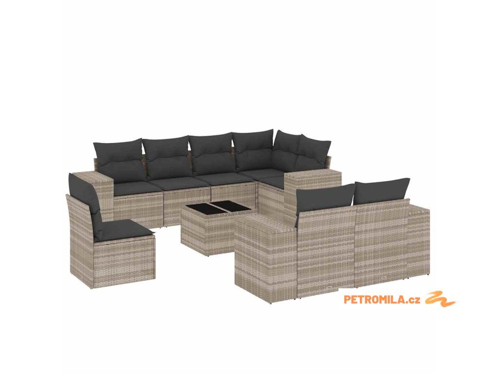 9dílná zahradní sedací souprava a podušky světle šedá polyratan