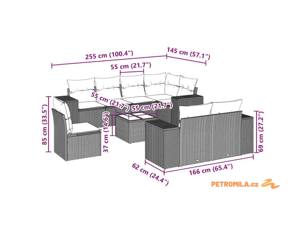 Tato zahradní sedací souprava je dokonalým doplňkem vaší zahrady, terasy nebo dvorku a poskytne vám pohodlné a příjemné místo, kde si můžete povídat s rodinou a přáteli nebo jen tak odpočívat a užívat si pobyt venku.