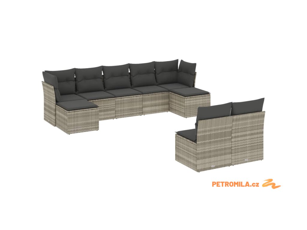 9dílná zahradní sedací souprava a podušky světle šedá polyratan