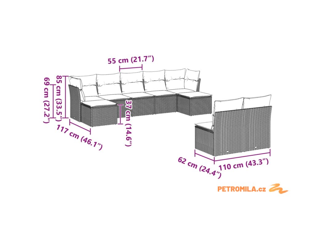 Tato zahradní sedací souprava je dokonalým doplňkem vaší zahrady, terasy nebo dvorku a poskytne vám pohodlné a příjemné místo, kde si můžete povídat s rodinou a přáteli nebo jen tak odpočívat a užívat si pobyt venku.