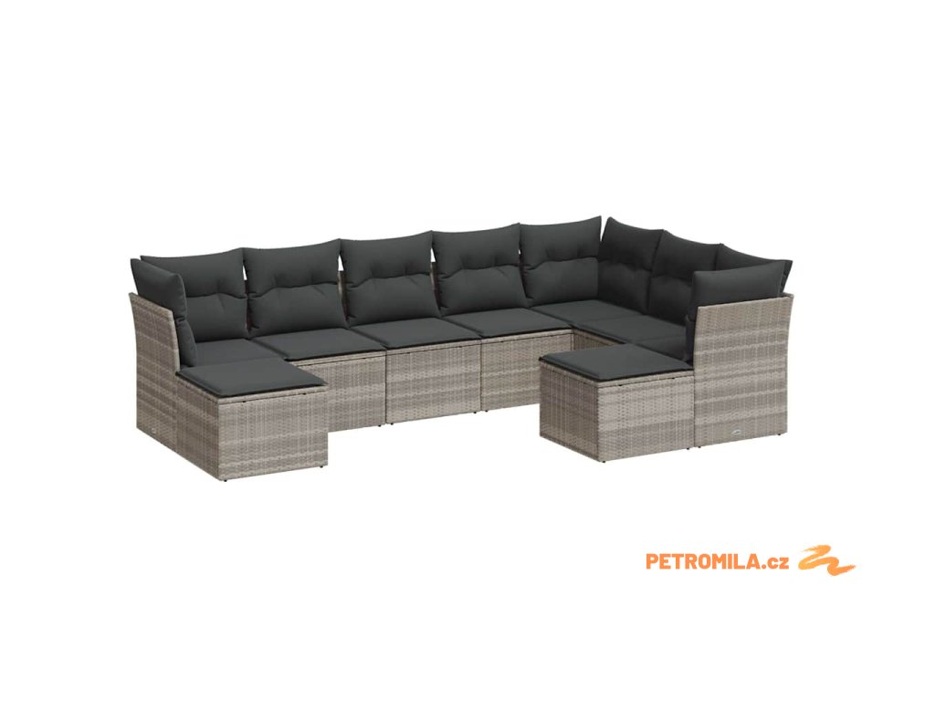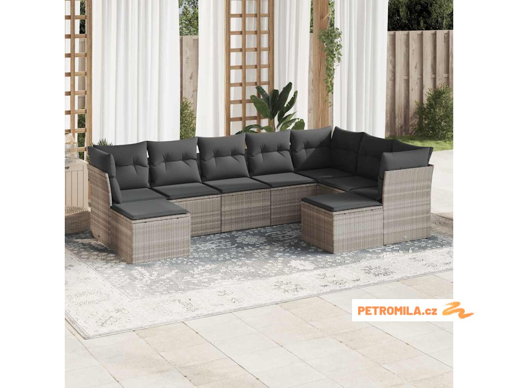 9dílná zahradní sedací souprava a podušky světle šedá polyratan