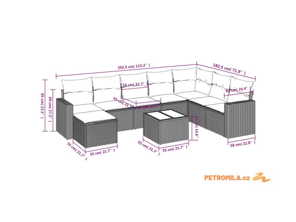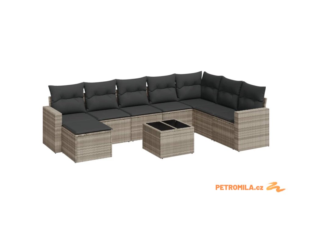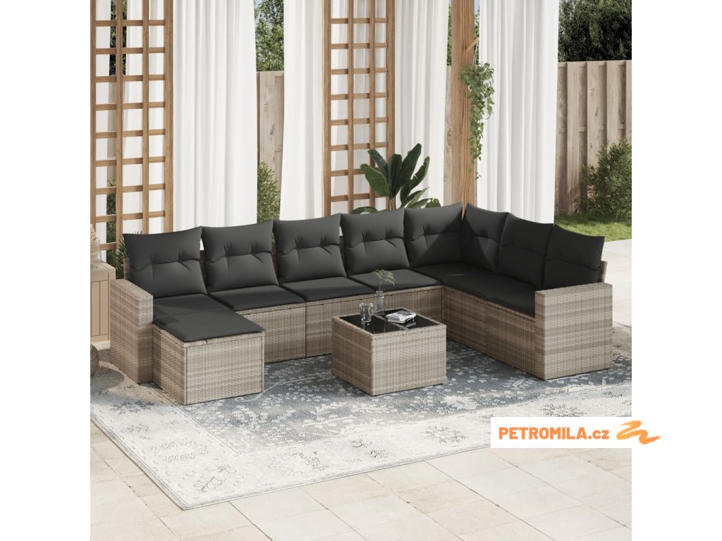 9dílná zahradní sedací souprava a podušky světle šedá polyratan