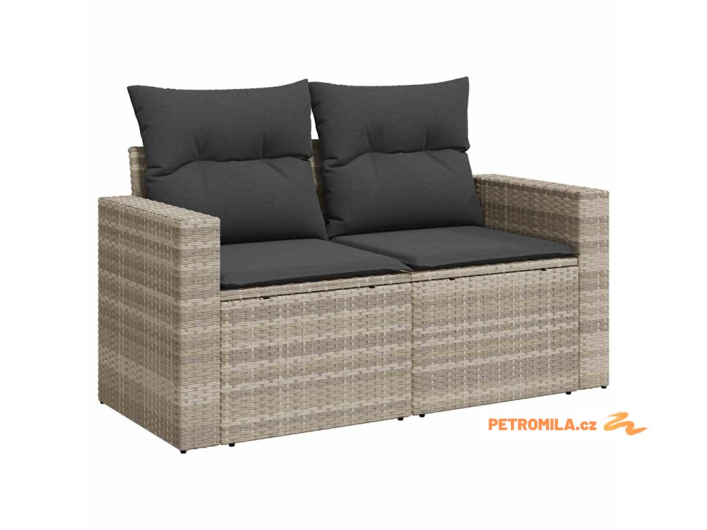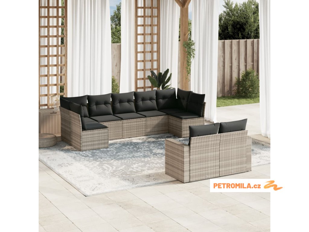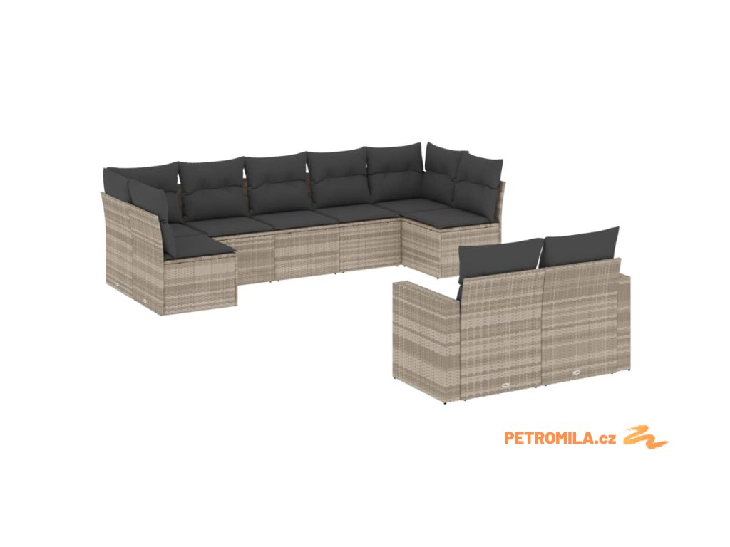 9dílná zahradní sedací souprava a podušky světle šedá polyratan