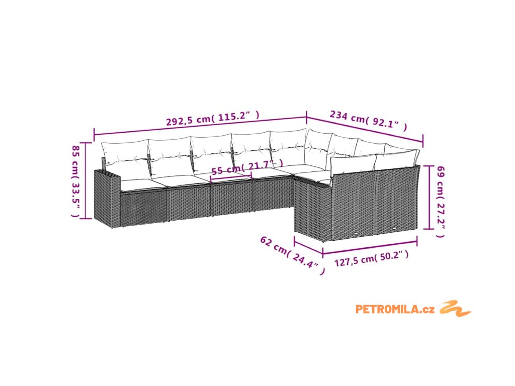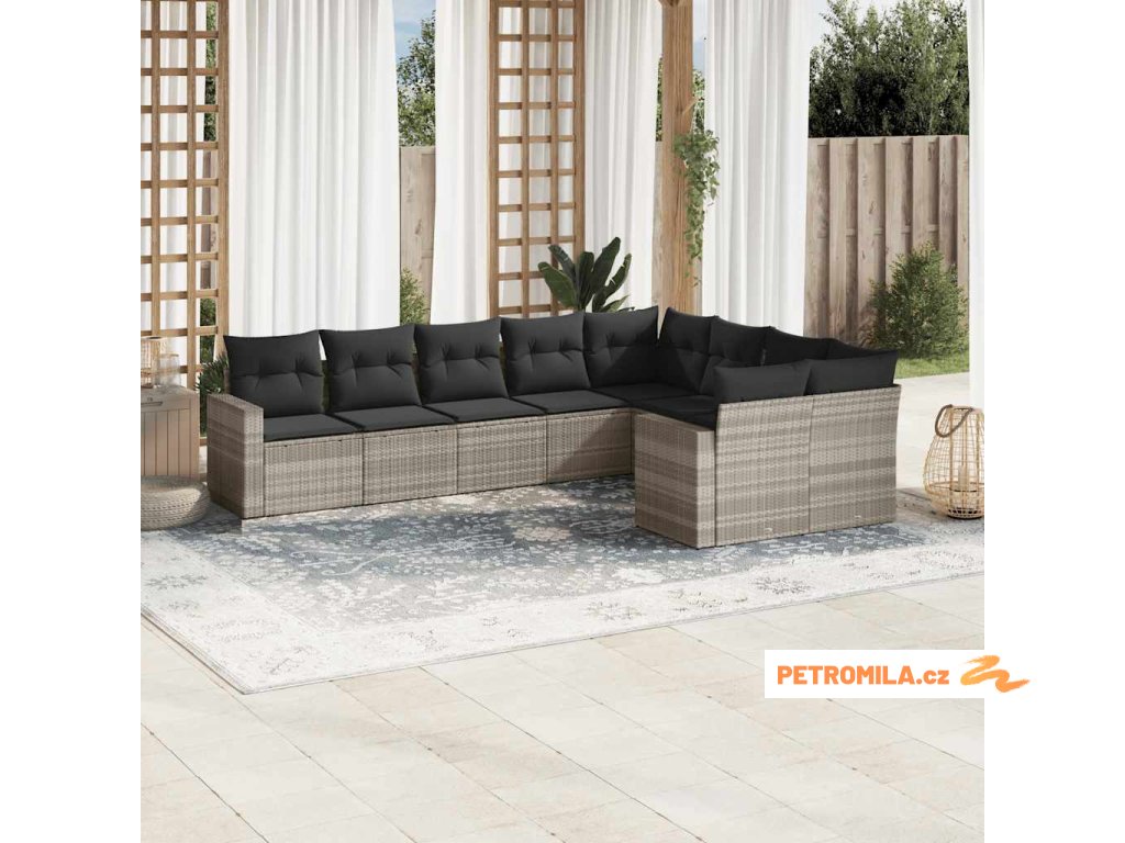 9dílná zahradní sedací souprava a podušky světle šedá polyratan