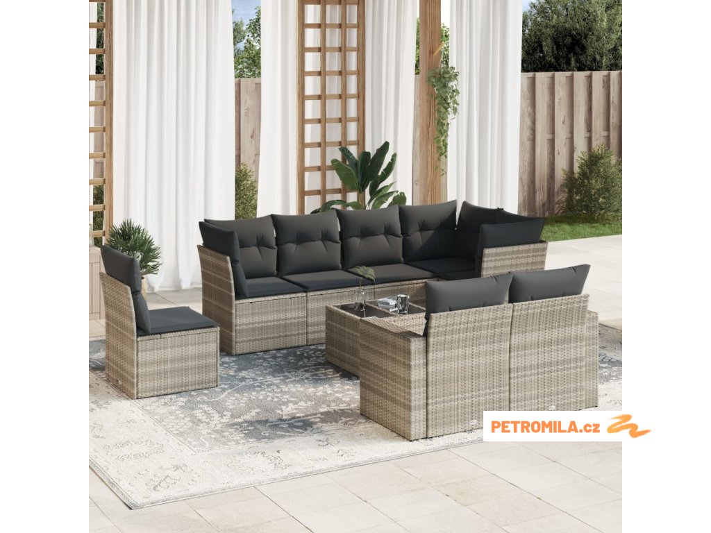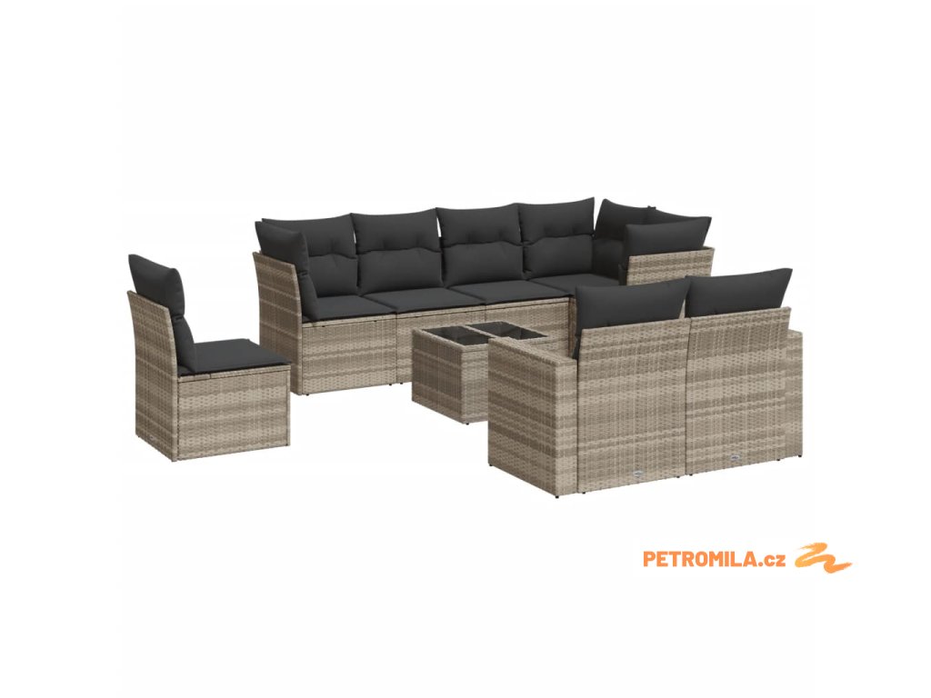 9dílná zahradní sedací souprava a podušky světle šedá polyratan