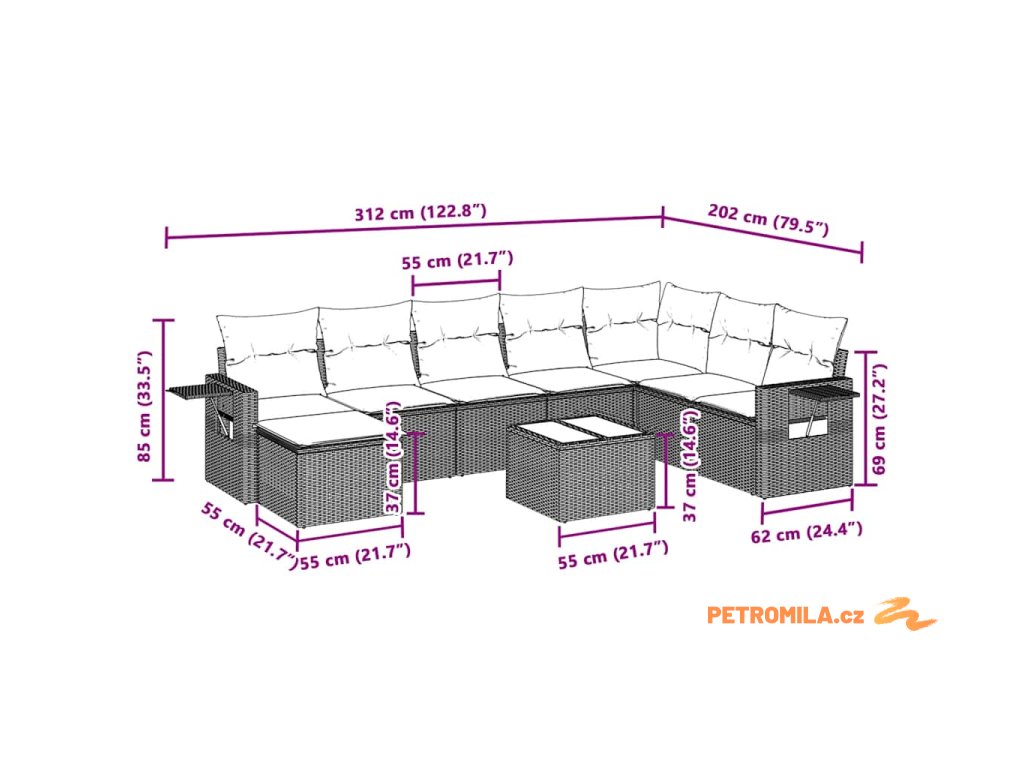 Tato zahradní sedací souprava je dokonalým doplňkem vaší zahrady, terasy nebo dvorku a poskytne vám pohodlné a příjemné místo, kde si můžete povídat s rodinou a přáteli nebo jen tak odpočívat a užívat si pobyt venku.