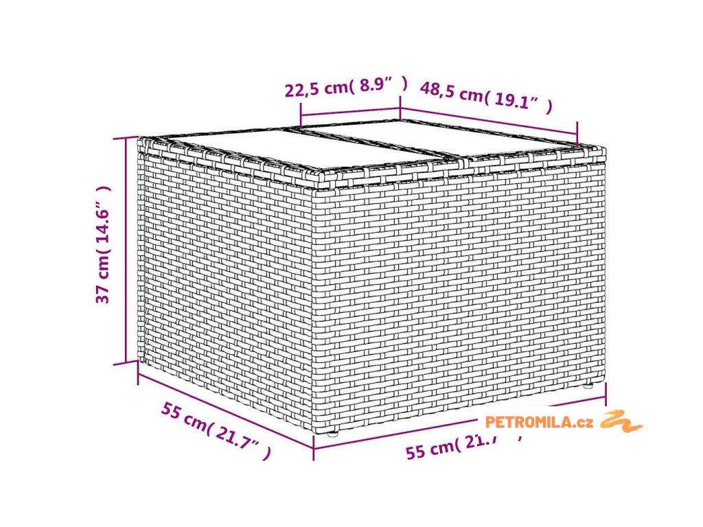 - Rozměry: 55 x 55 x 37 cm (D x Š x V)