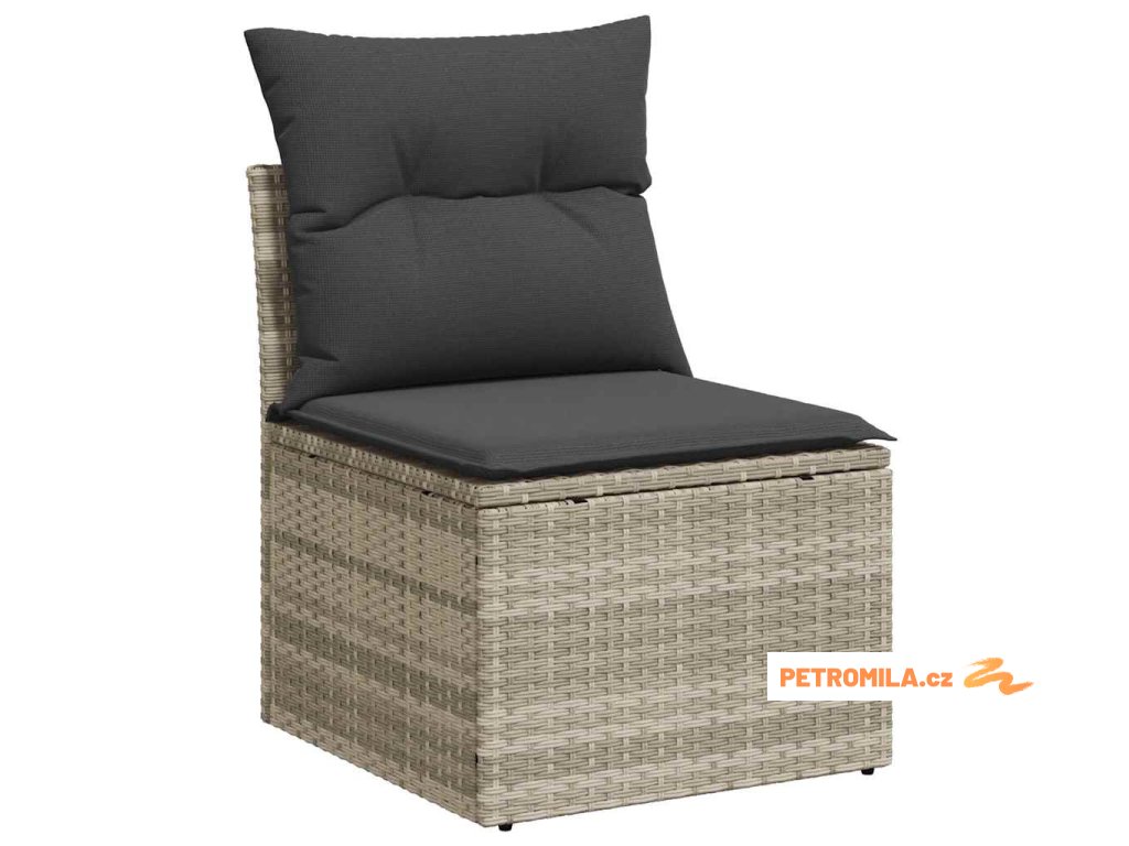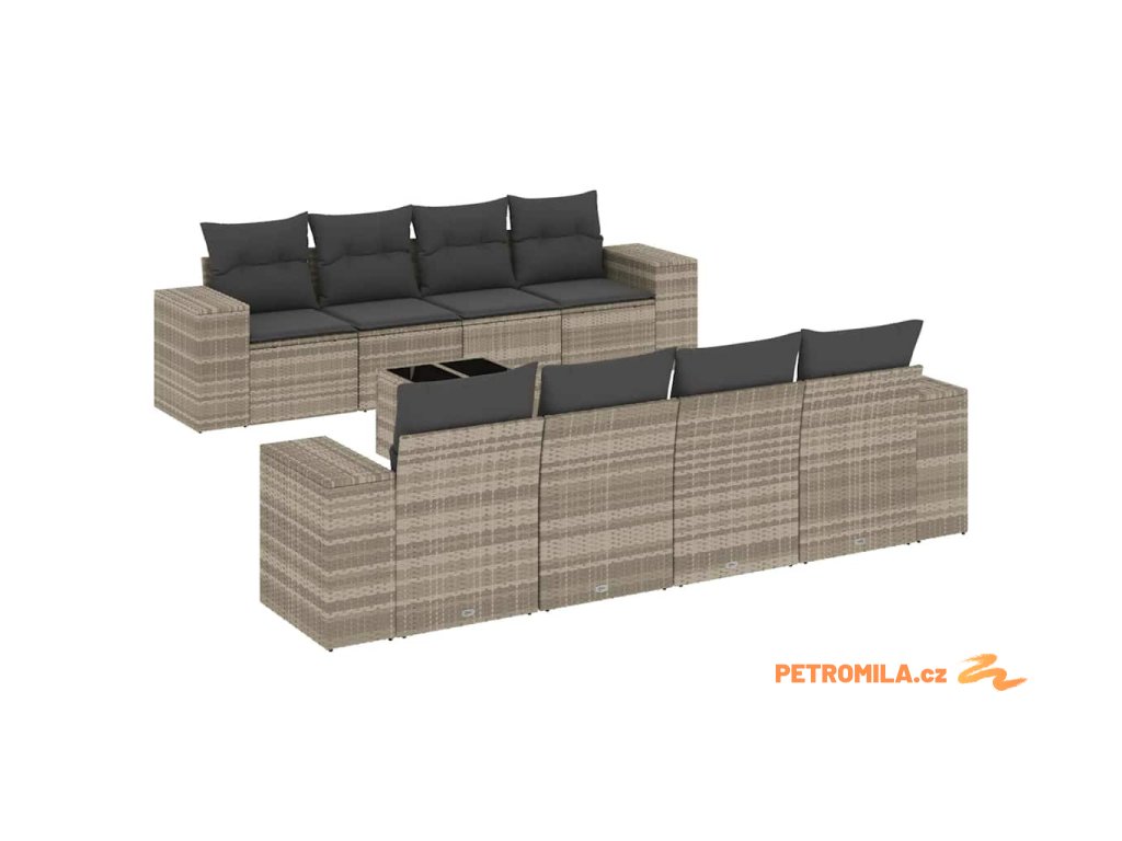 9dílná zahradní sedací souprava a podušky světle šedá polyratan