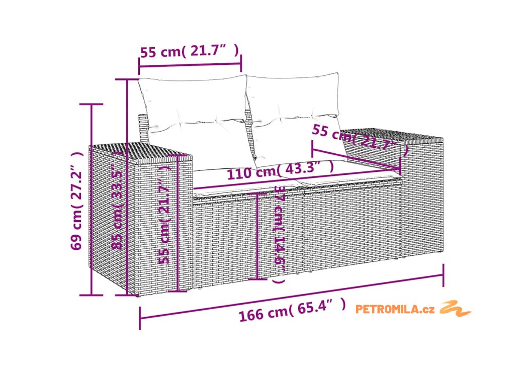 - Rozměry podušky za záda: 55 x 45 x 13 cm (D x Š x T)