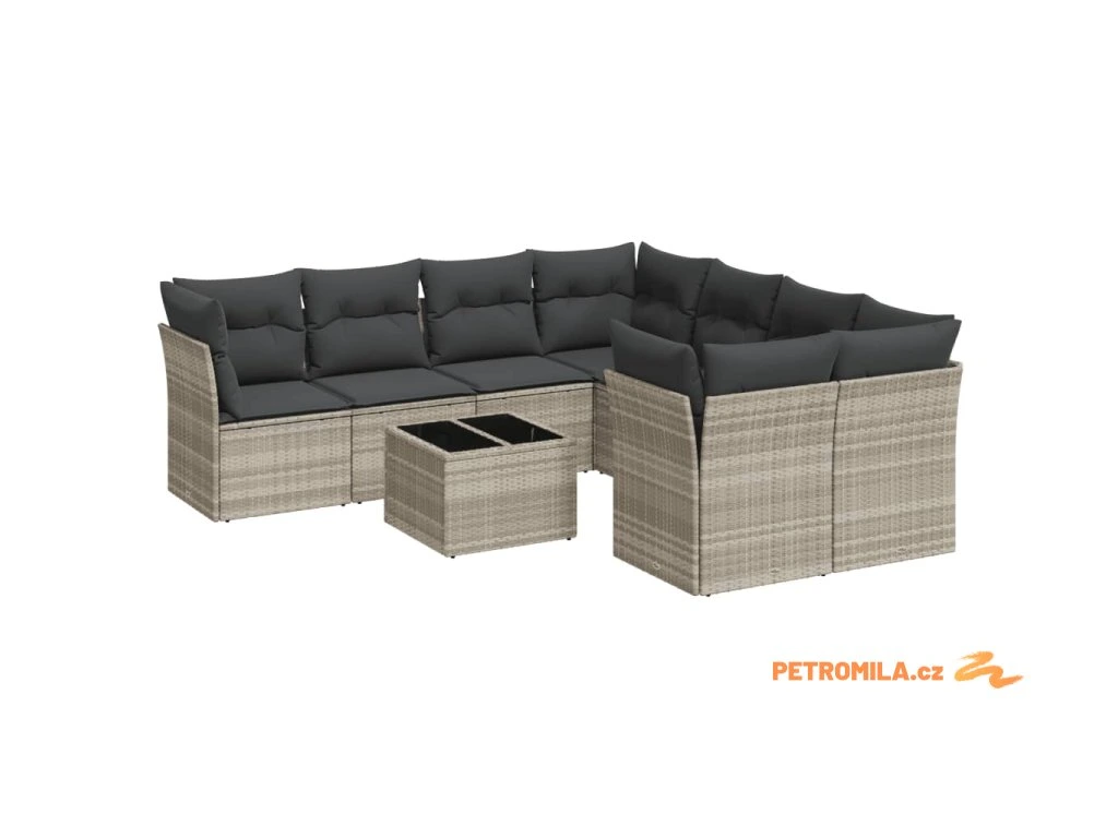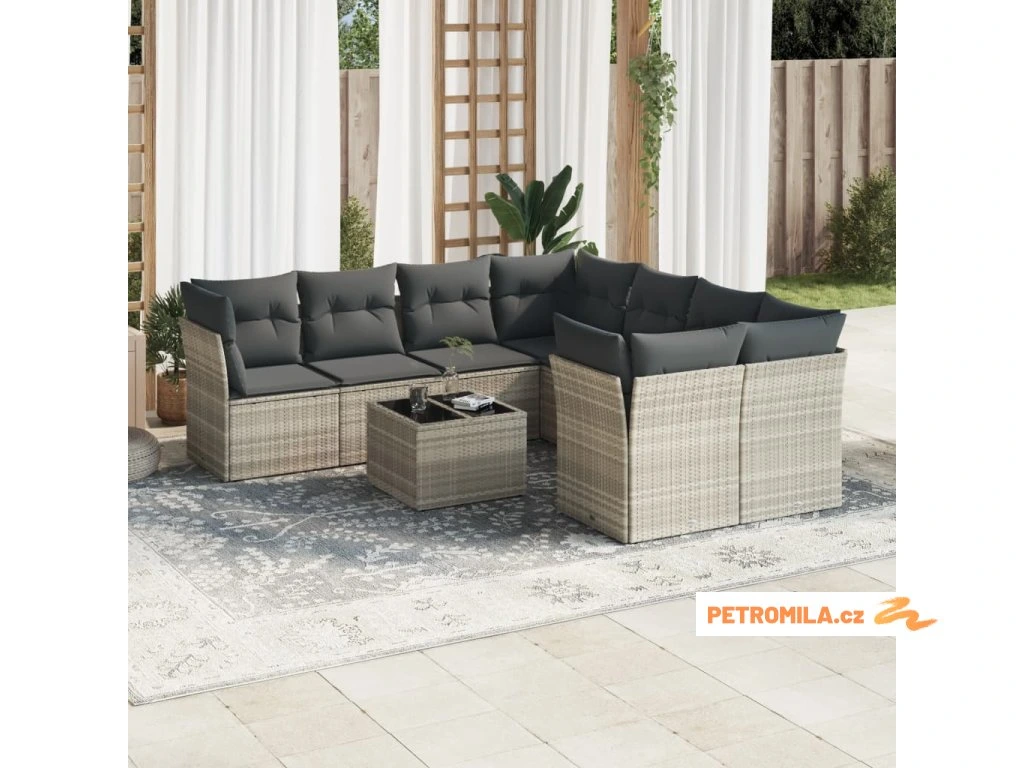 9dílná zahradní sedací souprava a podušky světle šedá polyratan