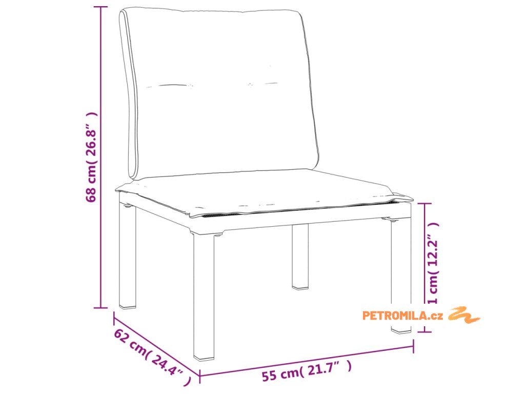 - Rozměry podušky na sedák: 55 x 55 x 3,5 cm (D x Š x T)