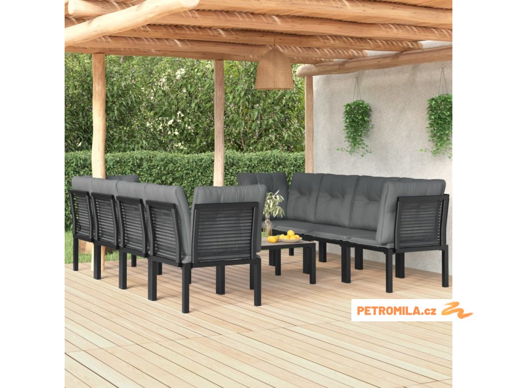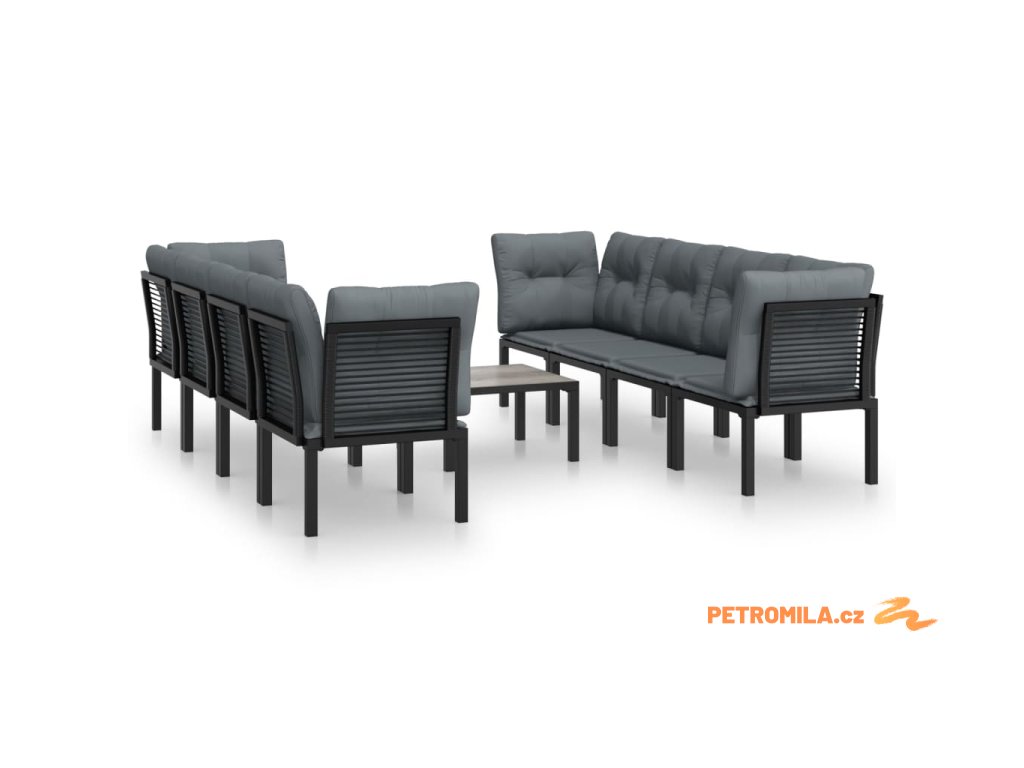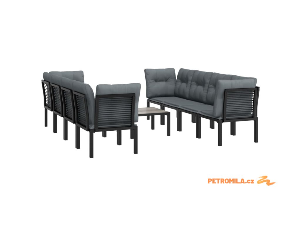 9dílná zahradní sedací souprava černá a šedá polyratan
