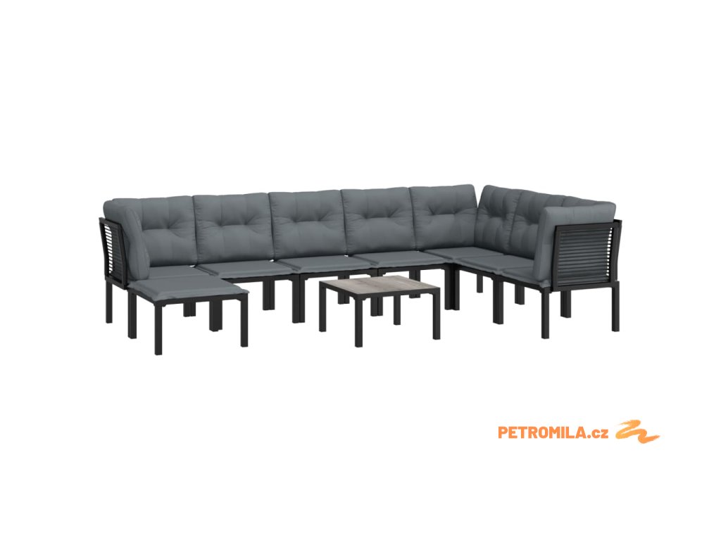 9dílná zahradní sedací souprava černá a šedá polyratan