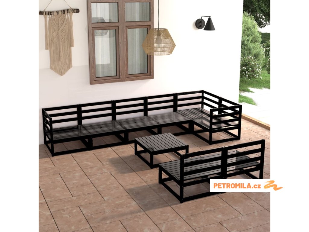 9dílná zahradní sedací souprava černá masivní borovice