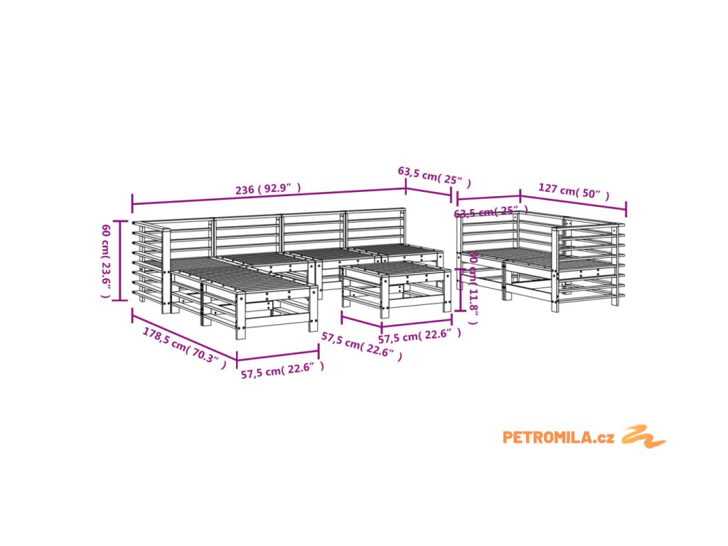- Rozměry středové pohovky: 57,5 x 63,5 x 60 cm (Š x H x V)