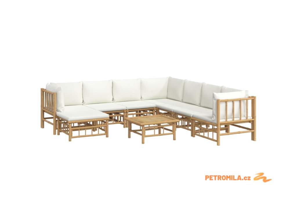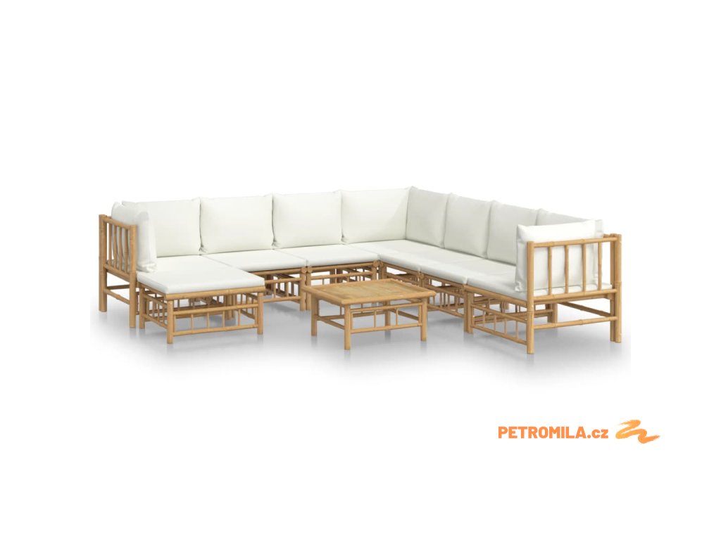 9dílná zahradní sedací souprava krémově bílé podušky bambus