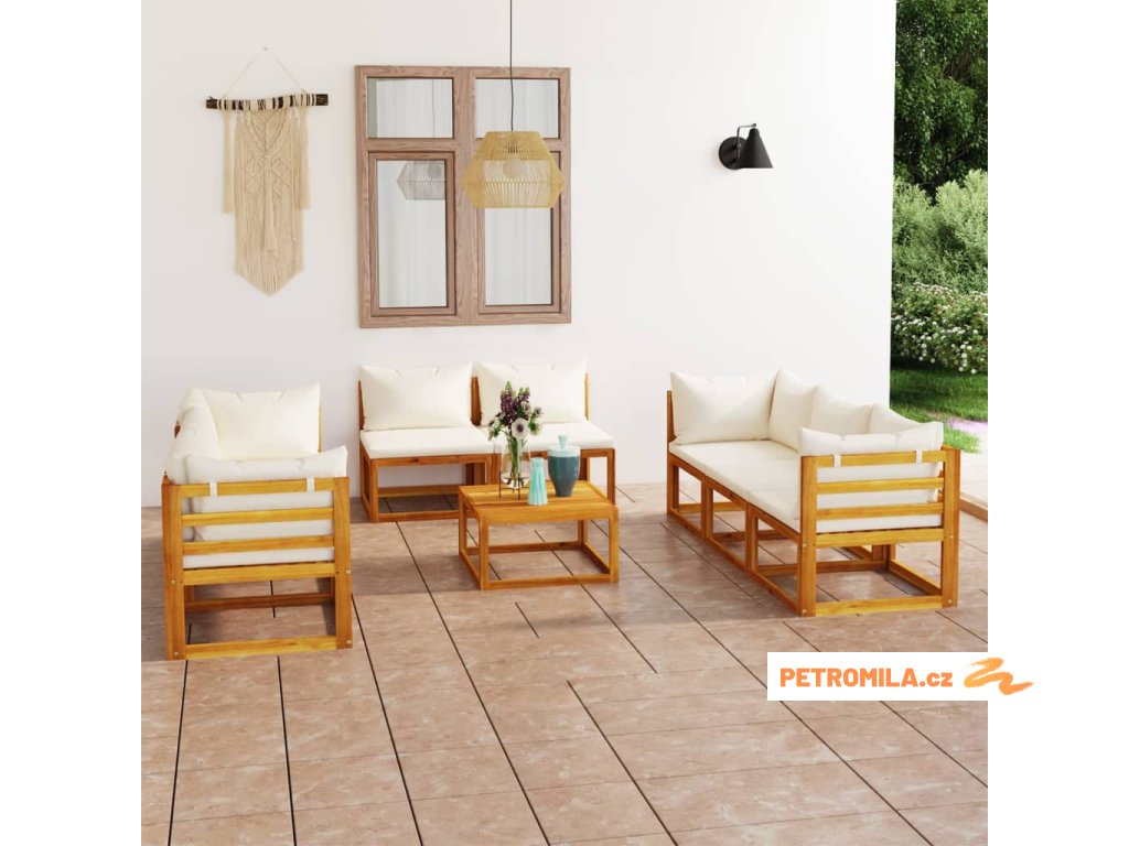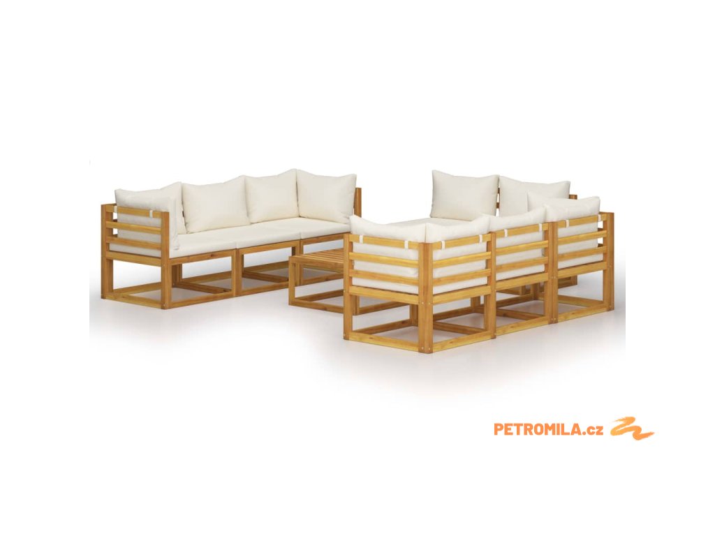 9dílná zahradní sedací souprava krémové podušky masivní akácie