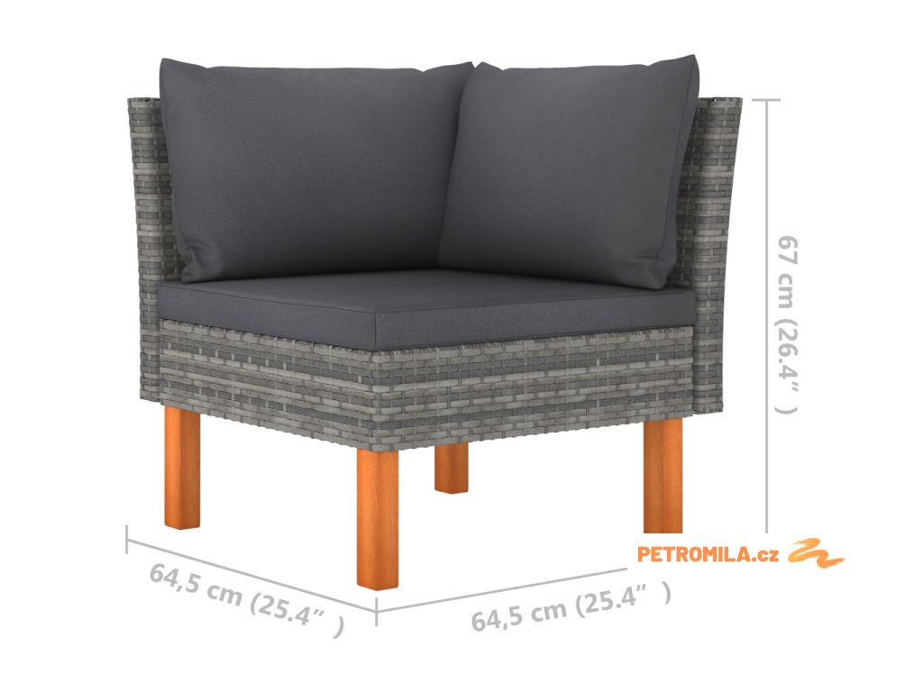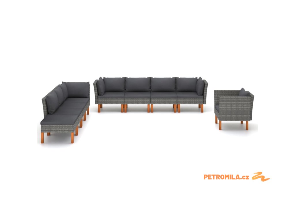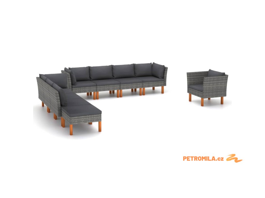 9dílná zahradní sedací souprava polyratan a eukalyptus šedá