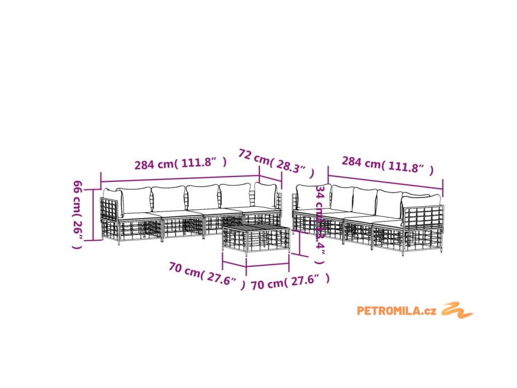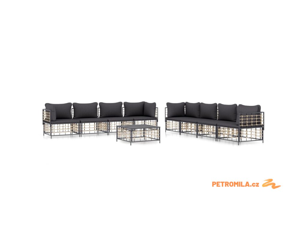 9dílná zahradní sedací souprava s poduškami antracit polyratan