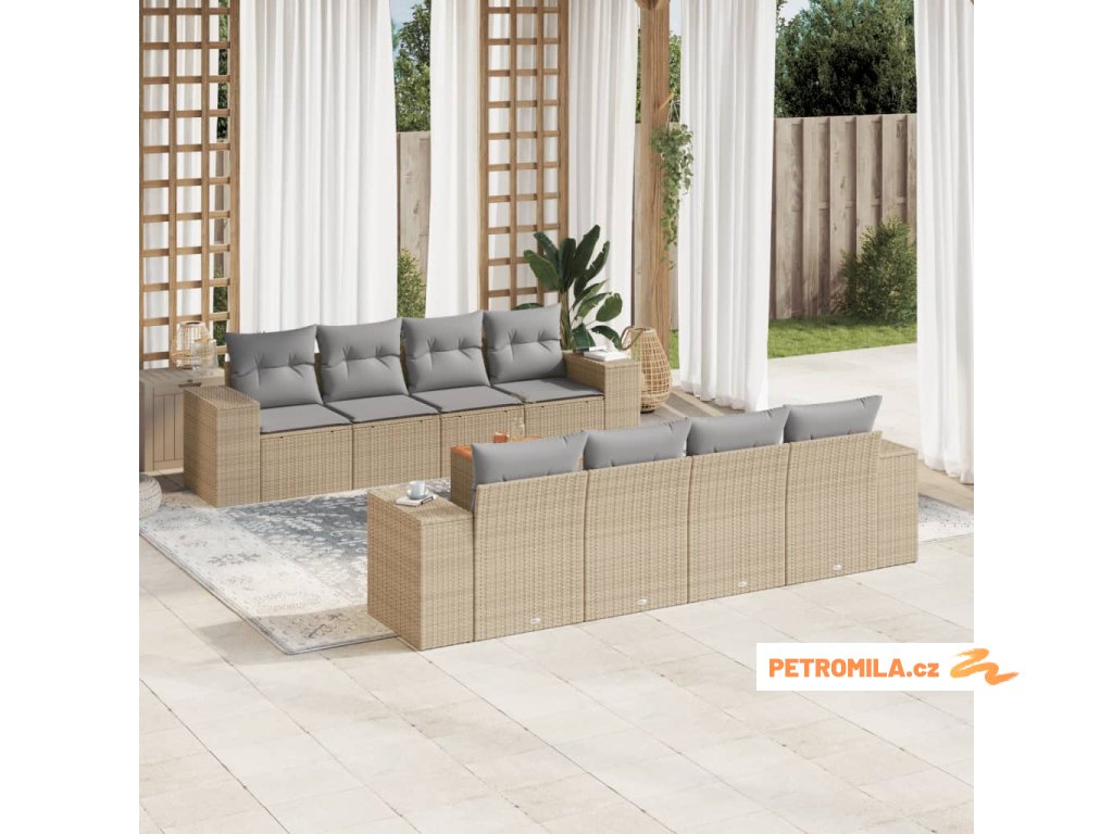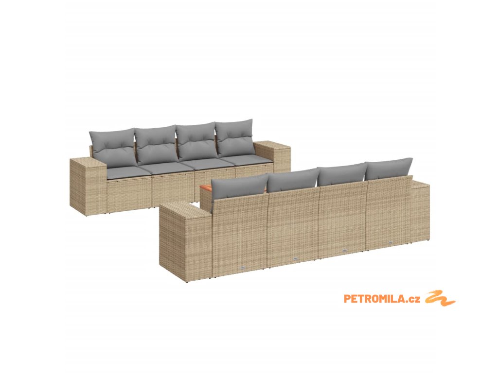 Sada zahradních pohovek s polštářem 8 pcs Béžová Poly ratan