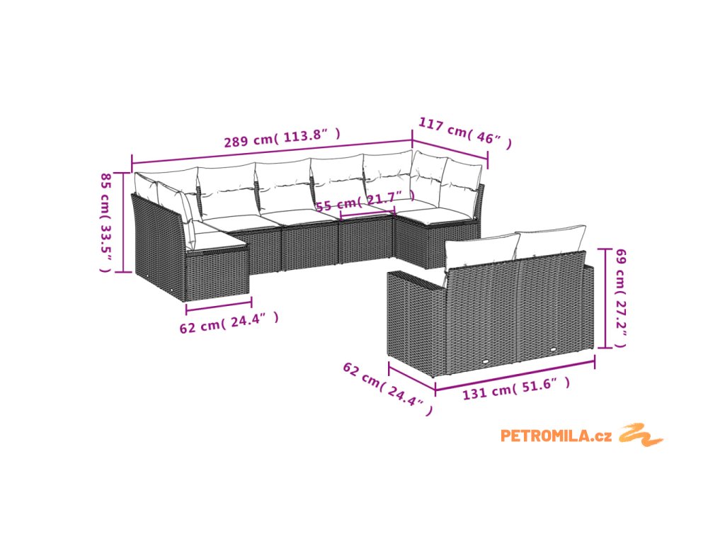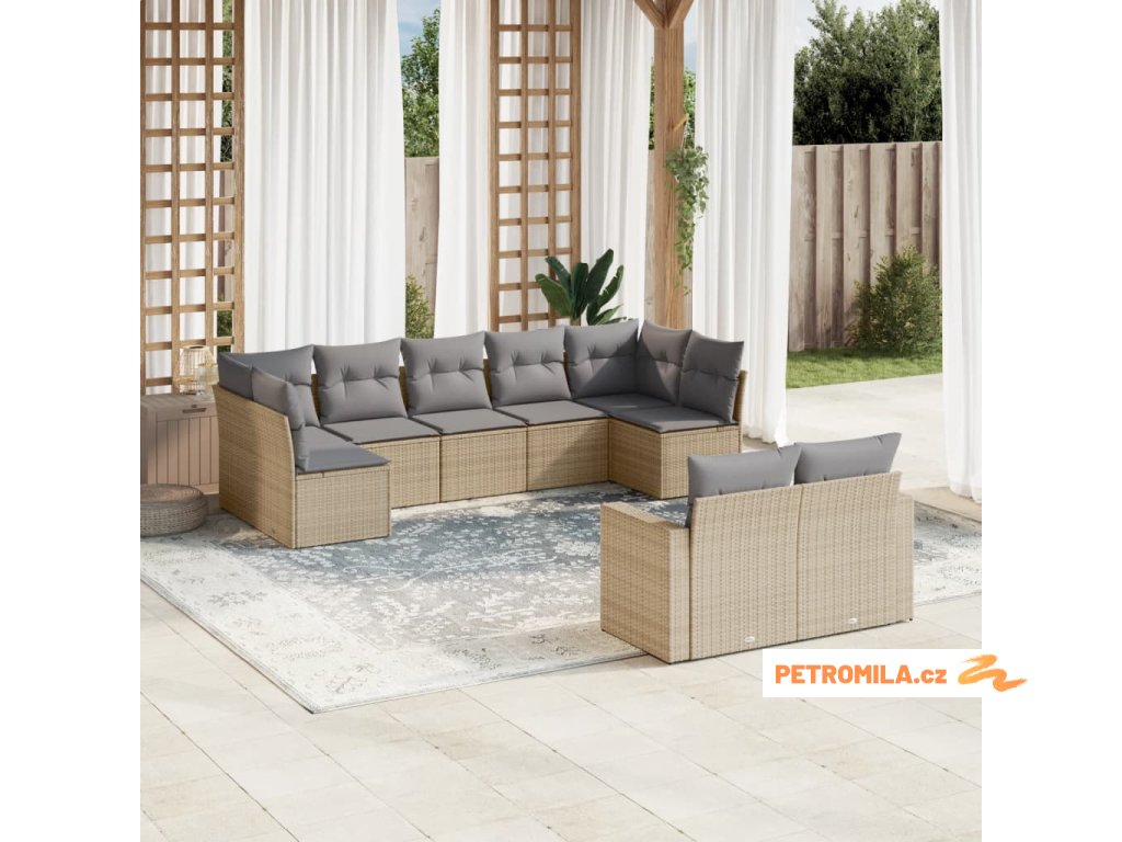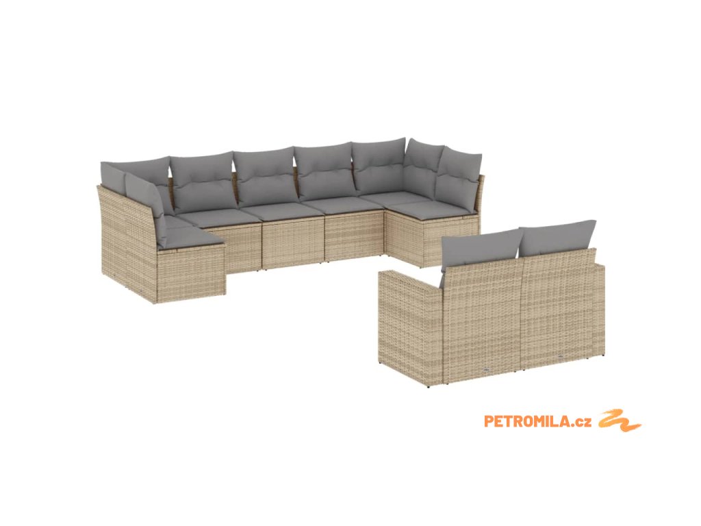 9dílná zahradní sedací souprava s poduškami béžová polyratan