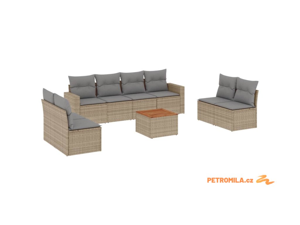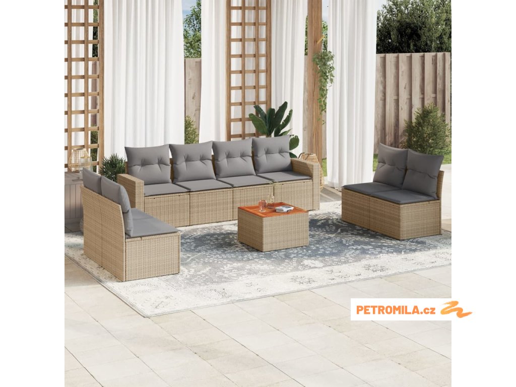 9dílná zahradní sedací souprava s poduškami béžová polyratan