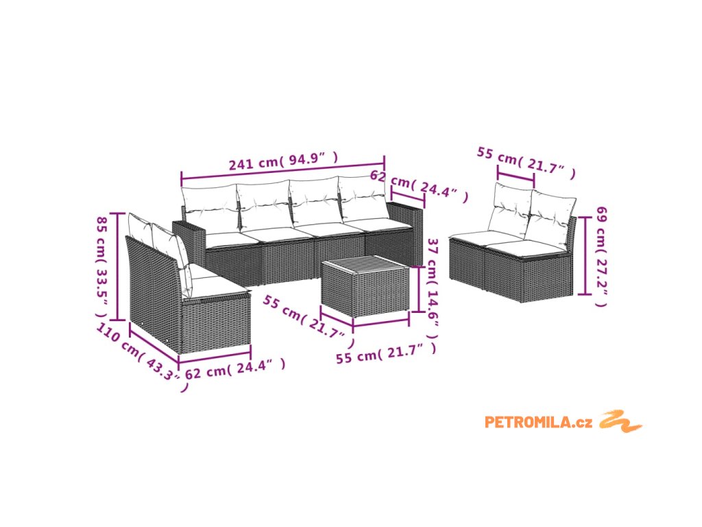 Sada zahradních pohovek 8 pcs Šedá polyratan