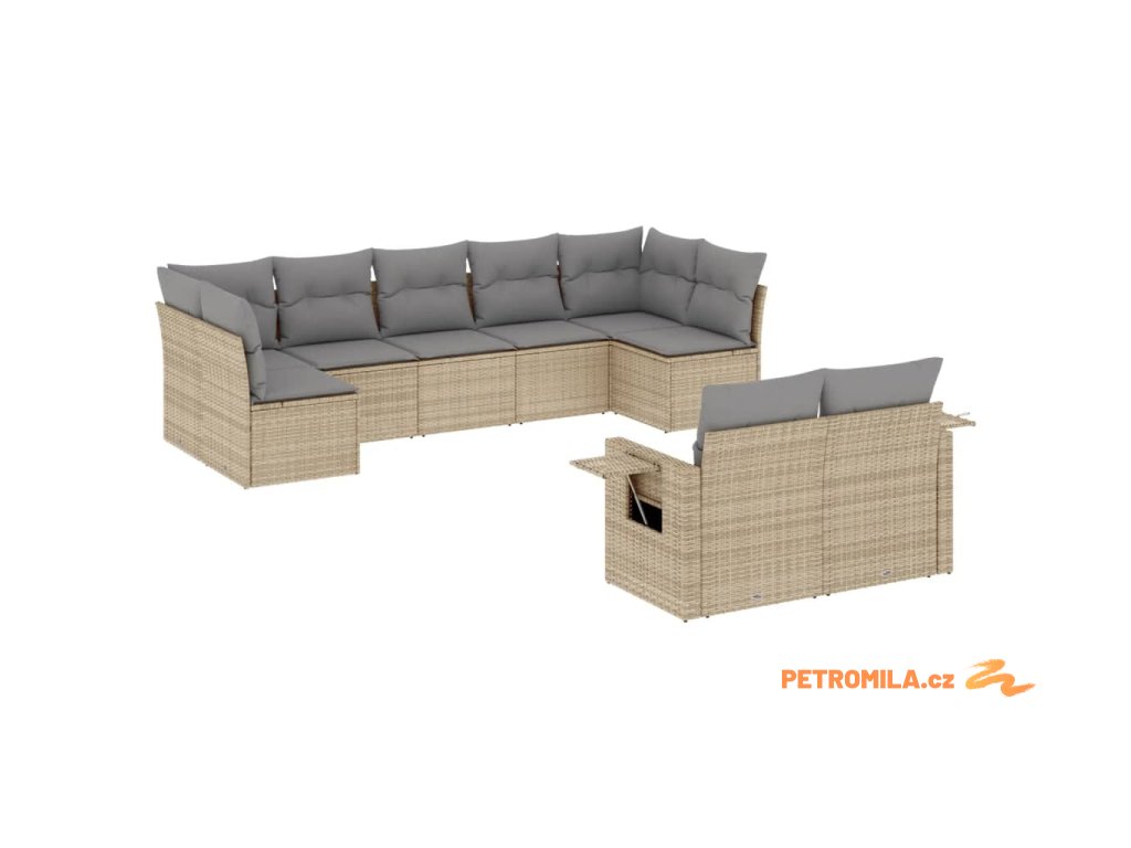 9dílná zahradní sedací souprava s poduškami béžová polyratan