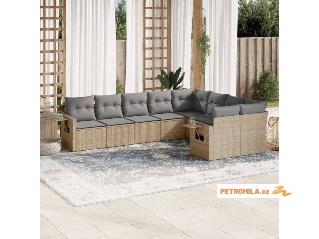 9dílná zahradní sedací souprava s poduškami béžová polyratan