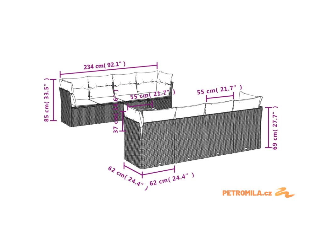 Tato zahradní sedací souprava je dokonalým doplňkem vaší zahrady, terasy nebo dvorku a poskytne vám pohodlné a příjemné místo, kde si můžete povídat s rodinou a přáteli nebo jen tak odpočívat a užívat si pobyt venku.