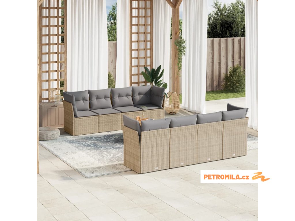 9dílná zahradní sedací souprava s poduškami béžová polyratan