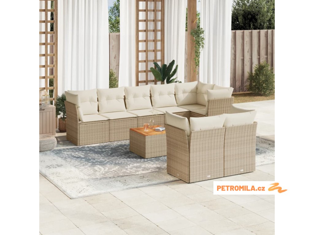 10dílná zahradní sedací souprava s poduškami béžová polyratan