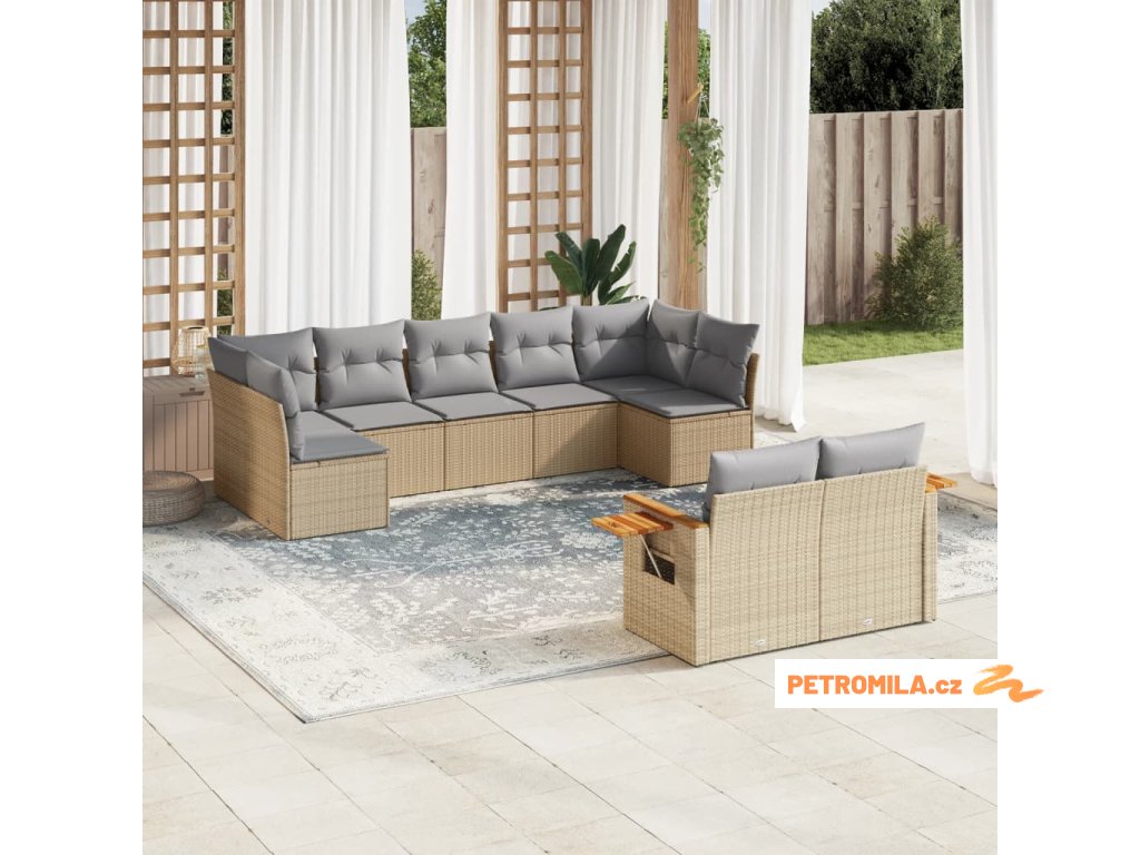 9dílná zahradní sedací souprava s poduškami béžová polyratan