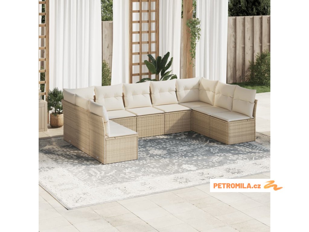 9dílná zahradní sedací souprava s poduškami béžová polyratan