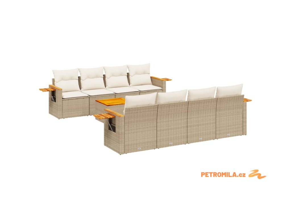 9dílná zahradní sedací souprava s poduškami béžová polyratan