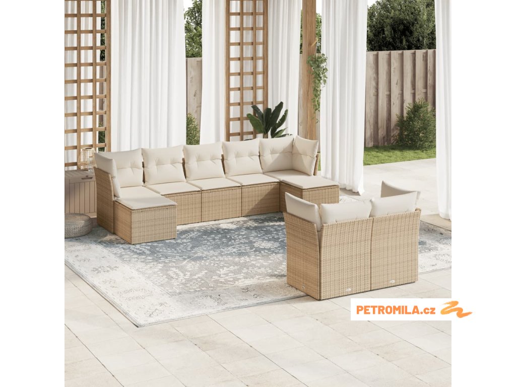 9dílná zahradní sedací souprava s poduškami béžová polyratan