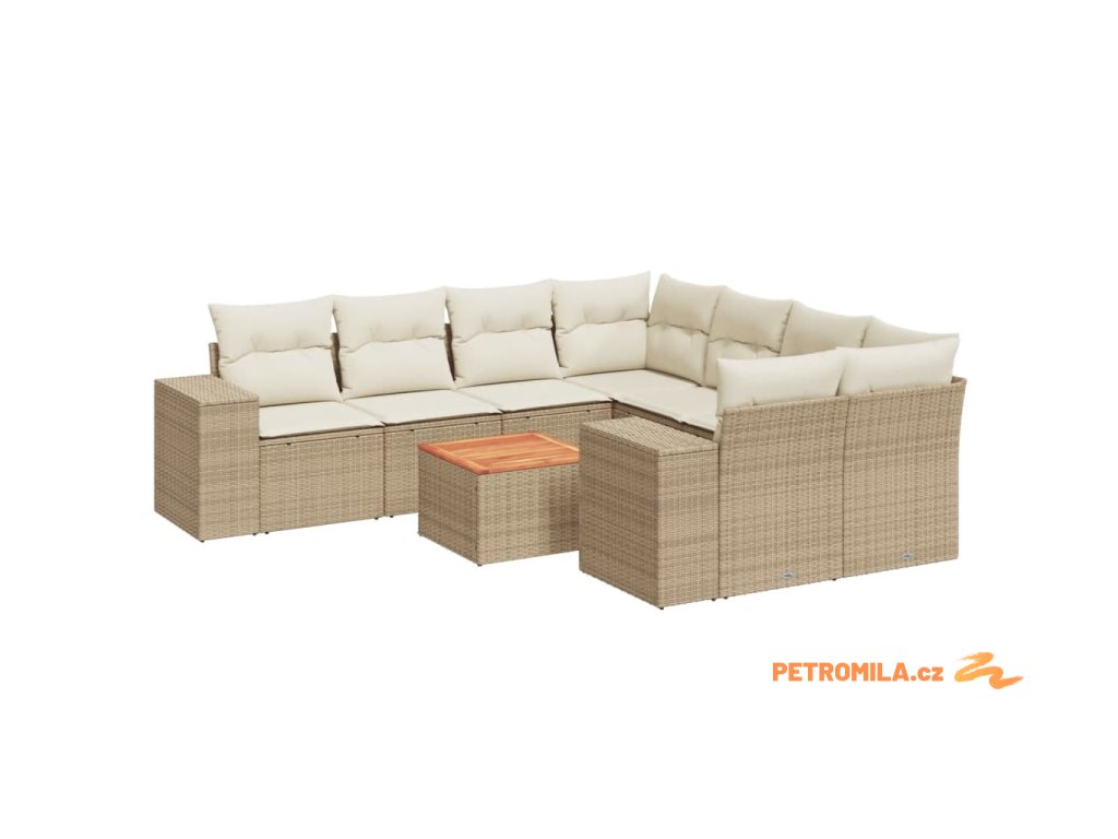 9dílná zahradní sedací souprava s poduškami béžová polyratan